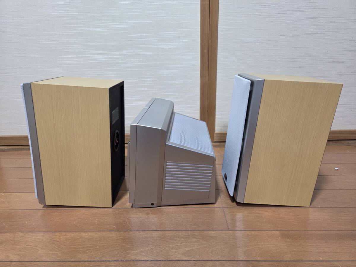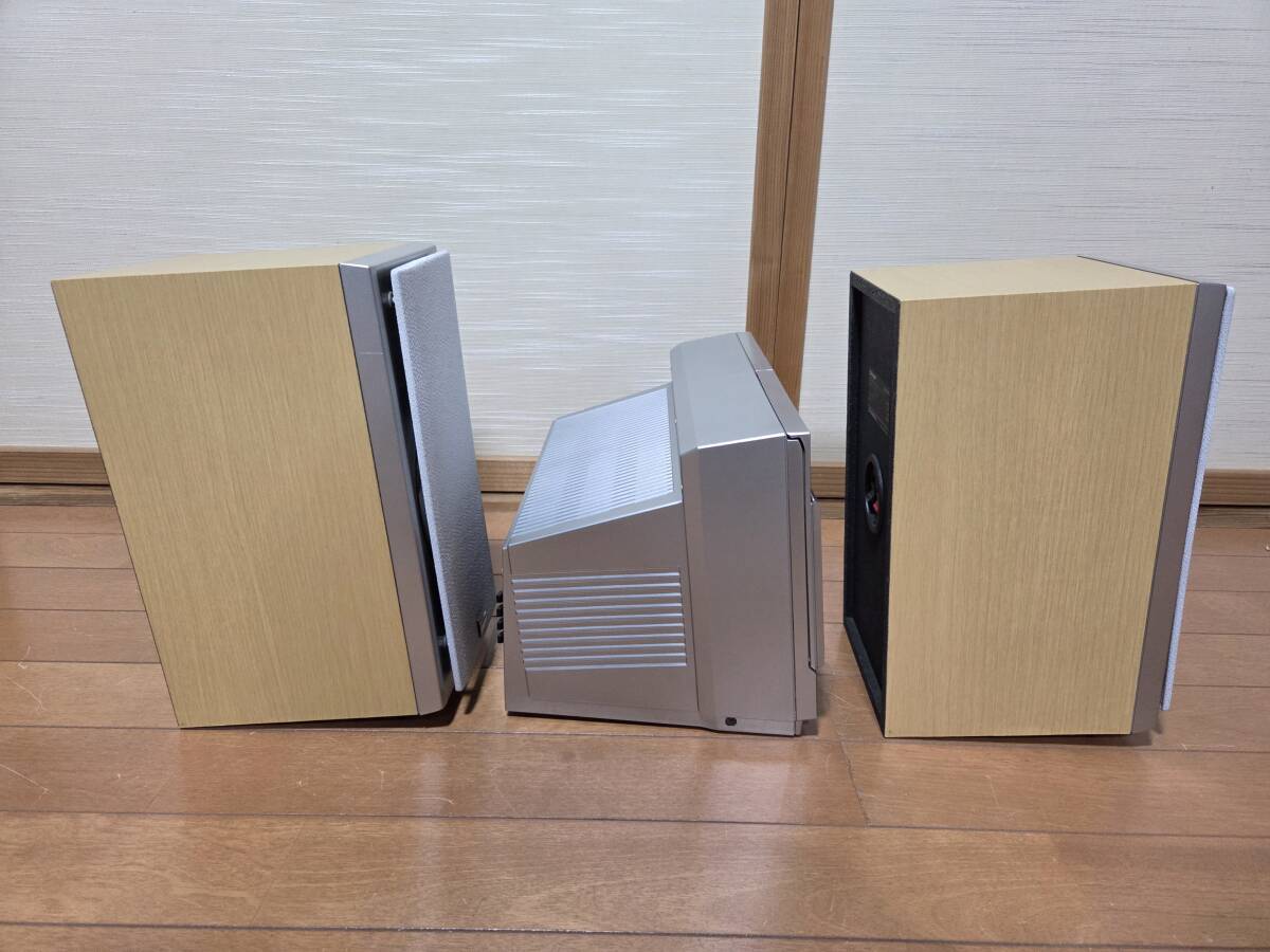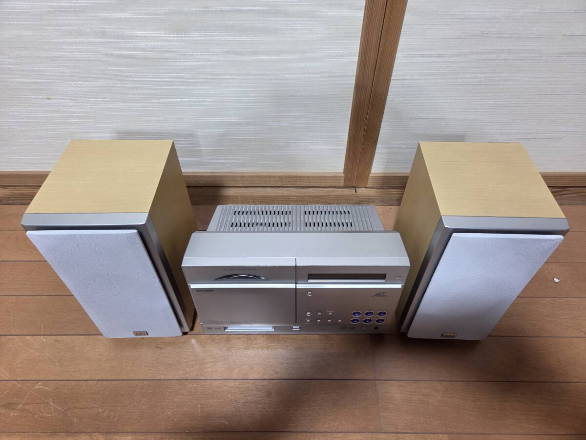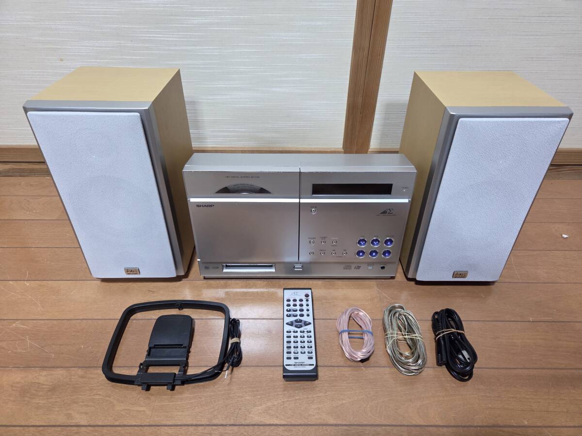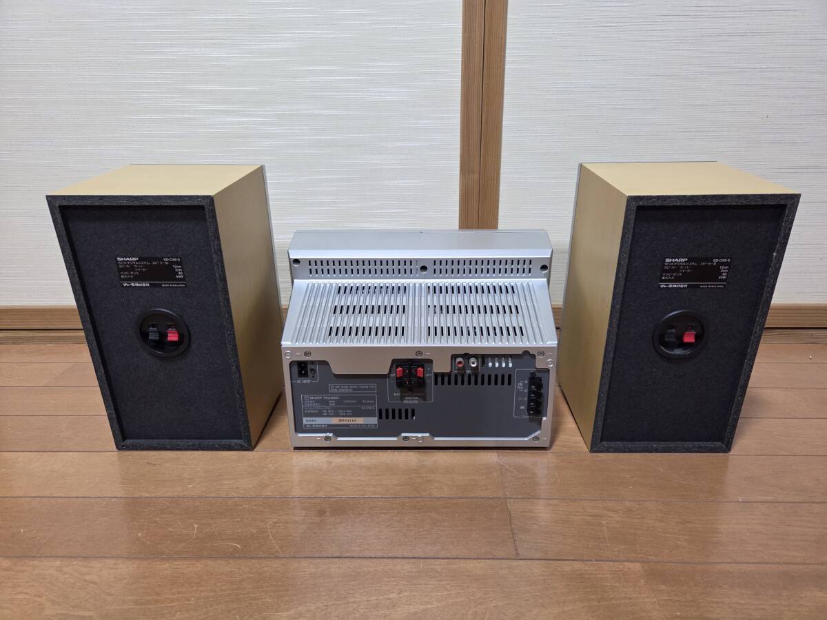 シャープのsd-cx8現状品です。画像の様にcd、md再生、am、fm受信音出し確認しました。画像には上手く写りませんでしたが表示もハッキリ写ります。録音はソフトが無いので確認していません。出品物はsd-cx8、スピーカー、リモコン、スピーカーケーブル、amfm アンテナ、電源ケーブルです。発送はヤマト運輸の着払いです。中身を入れ換えてクレームを言う方が居ます、ノークレーム、ノーリターン、ノーサポートです。