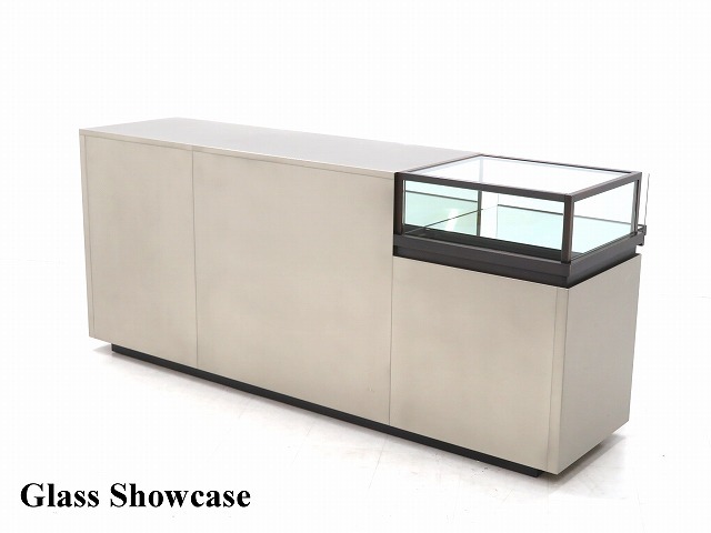 モダンなカウンター型ショーケース のご紹介です。金属の無機質な表情を活かしたモダンなデザインに