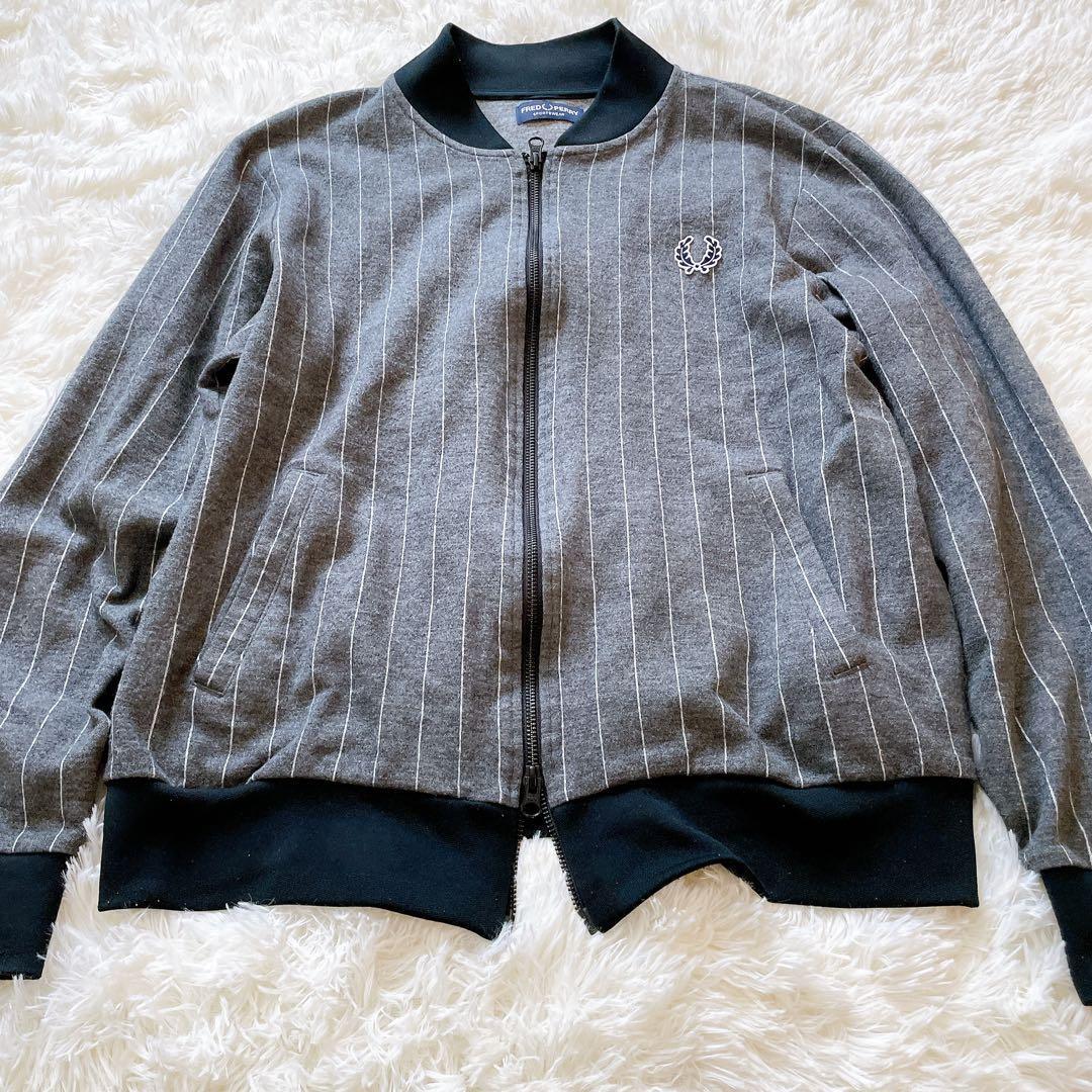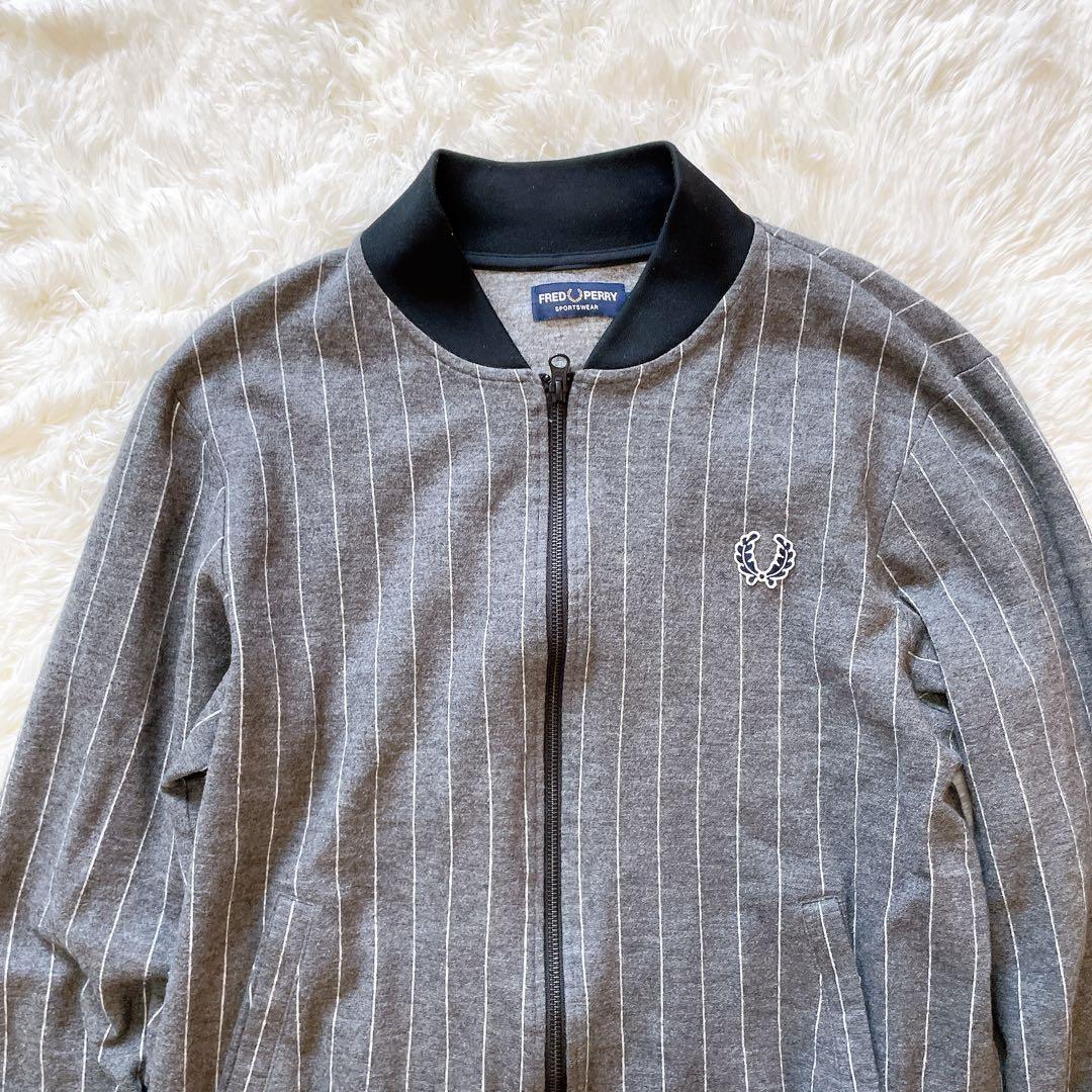 フレッドペリー FREDPERRY トラックジャケット ブルゾン ジャージ スポーツウェア ピンストライプ グレー 月桂樹ロゴ メンズ Lサイズ ジップアップ セットアップ対応 ジャケット 上品 キレイめ 春 秋 冬 美品 正規品