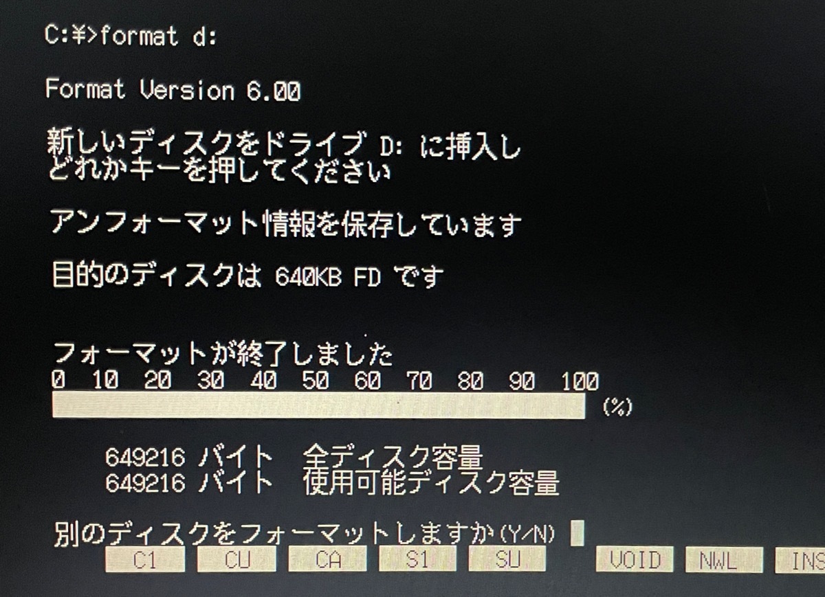 2HD(1.2MB、1.44MB)のディスクフォーマット、2DD(640KB)のディスクフォーマットできました