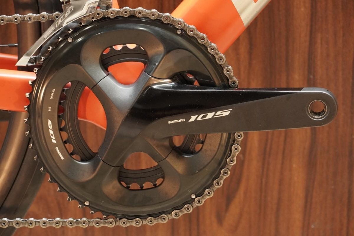 年式:2021 フレーム:カーボン フォーク:カーボン メインコンポ:SHIMANO 105 R7020 2X11S クランク:SHIMANO 105 FC-R7000 172.5mm 50T:34T ホイール:MADDUX RD2.0 タイヤ:700X28C スプロケット:11S 11T:28T ハンドル幅:380mm ステム長:80mm サイズ:54 トップチューブ長(C-C):549mm (※ホリゾンタル換算値) シートチューブ長(C-T):504mm 適応身長:170cm~180cm程度 実測重量:8.15kg ※掲載画像状態 |