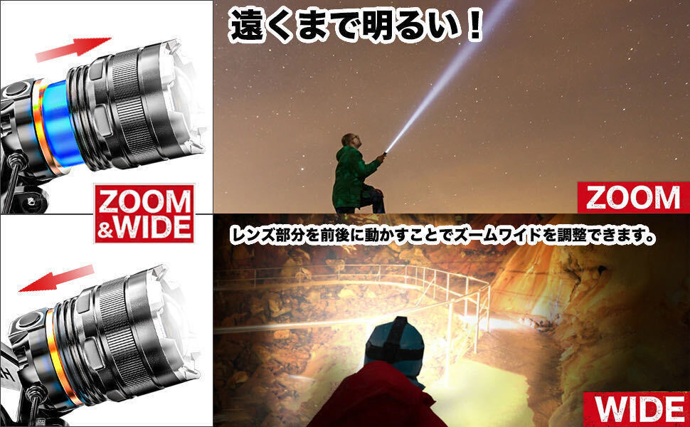 | ズーム有りセンサー付き | 集光・散光・LED切替OK。任意のモードで、3秒間押してセンサーモードに入ることができます。 起動している場合は、センサーから10CM以内に手を振ると、ハイライトモードがオンオフコントロール出来ます。 |