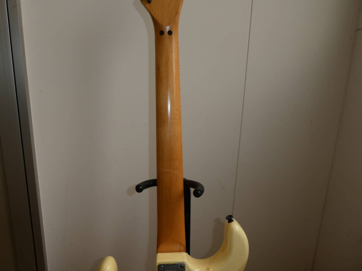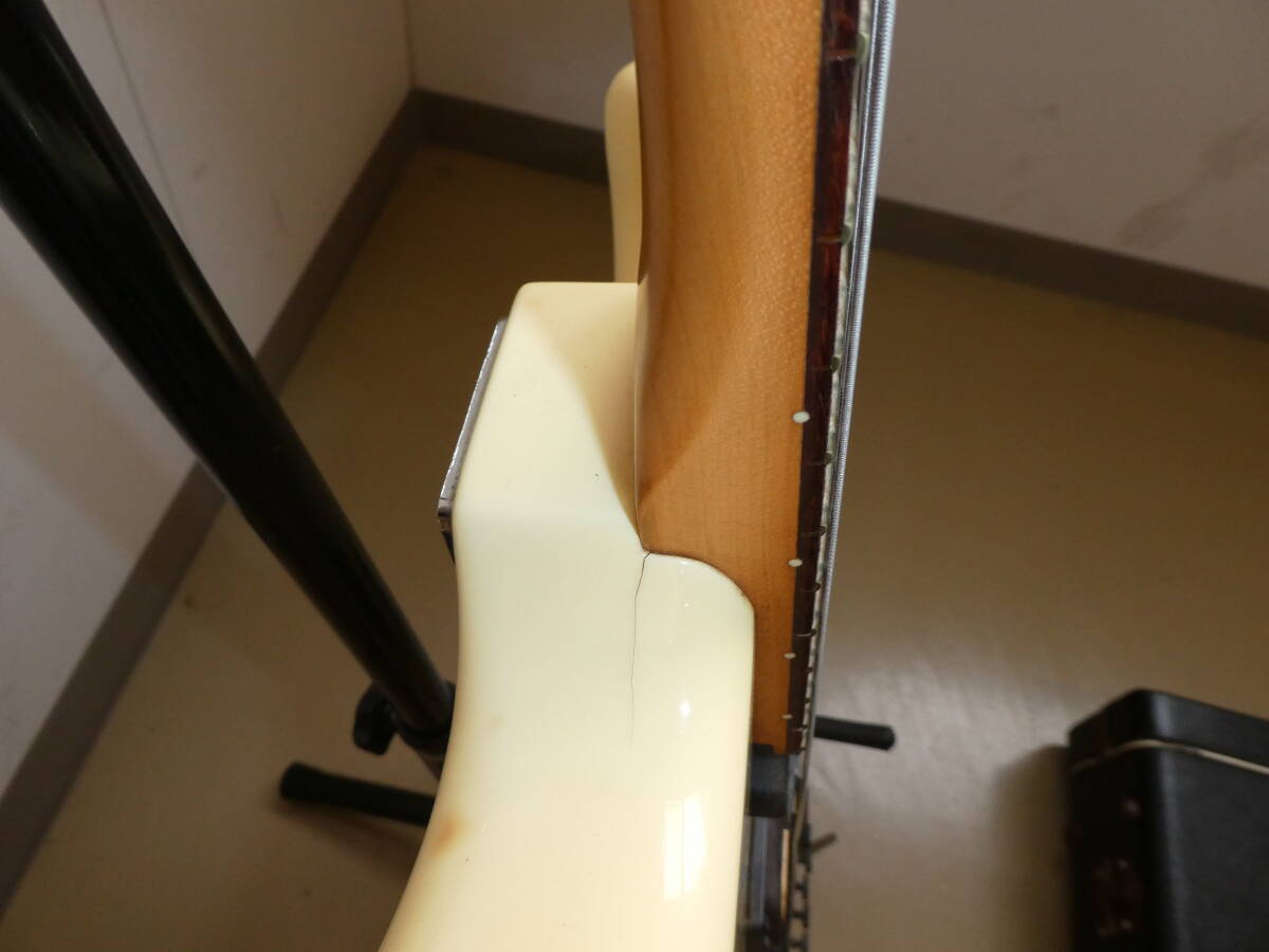 リバースヘッドが馴染めず、ピックアップを他のギターに付けて使っておりました。私の配線ミスだと思うのですが元に戻した際、爆ノイズになってしまいました。本体には然程思い入れは無いので出品いたします。ボディ裏キャビティの蓋に歪みが有ります。ネックポケット、例の所にクラックが有ります。サドルをタケウチのロック出来る物に変えて有ります。拭いても落ちないシミの様な物があります。重量は持って体重計に乗ったところ、3.6kgです。他にも此方の気が付かない不具合有るかもしれません。ジャンク扱い、画像で判断できる方の入札をお願いいたします。発送は画像のソフトケースに入れ、プチプチ、ギター用段ボール佐川急便180サイズ着払いです。お約束の3Nでお願いいたします。