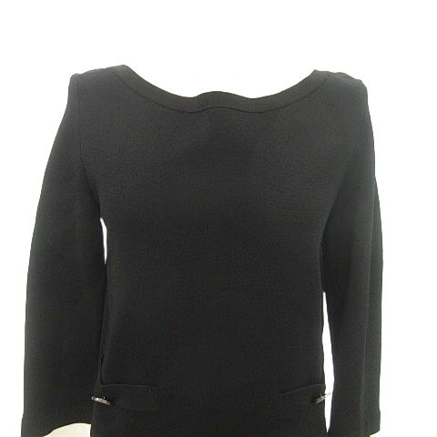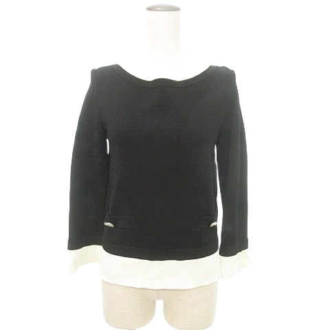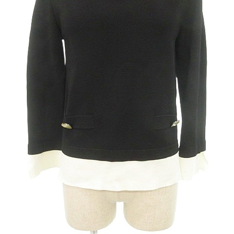 エポカ EPOCA 美品 レイヤード風 ニット トップス 長袖 40 Lサイズ 黒 ブラック 白 ホワイト レディース