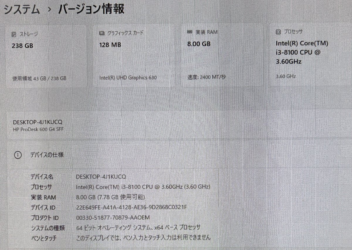 OS、ドライバなどのアップデート実施:Windows Up Dateほか実施済み