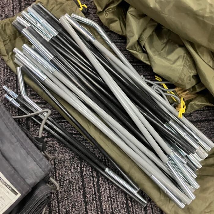 ※テントなど設営確認済みの記載がないものは生地の汚れや焚き火による穴あきなど見落としがある場合がございます。