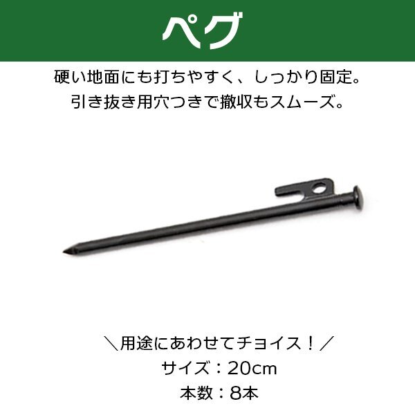 ペグ[20cm 8本] ハンマー ペグ袋 3点セット 選べるハンマーカラー | ||||