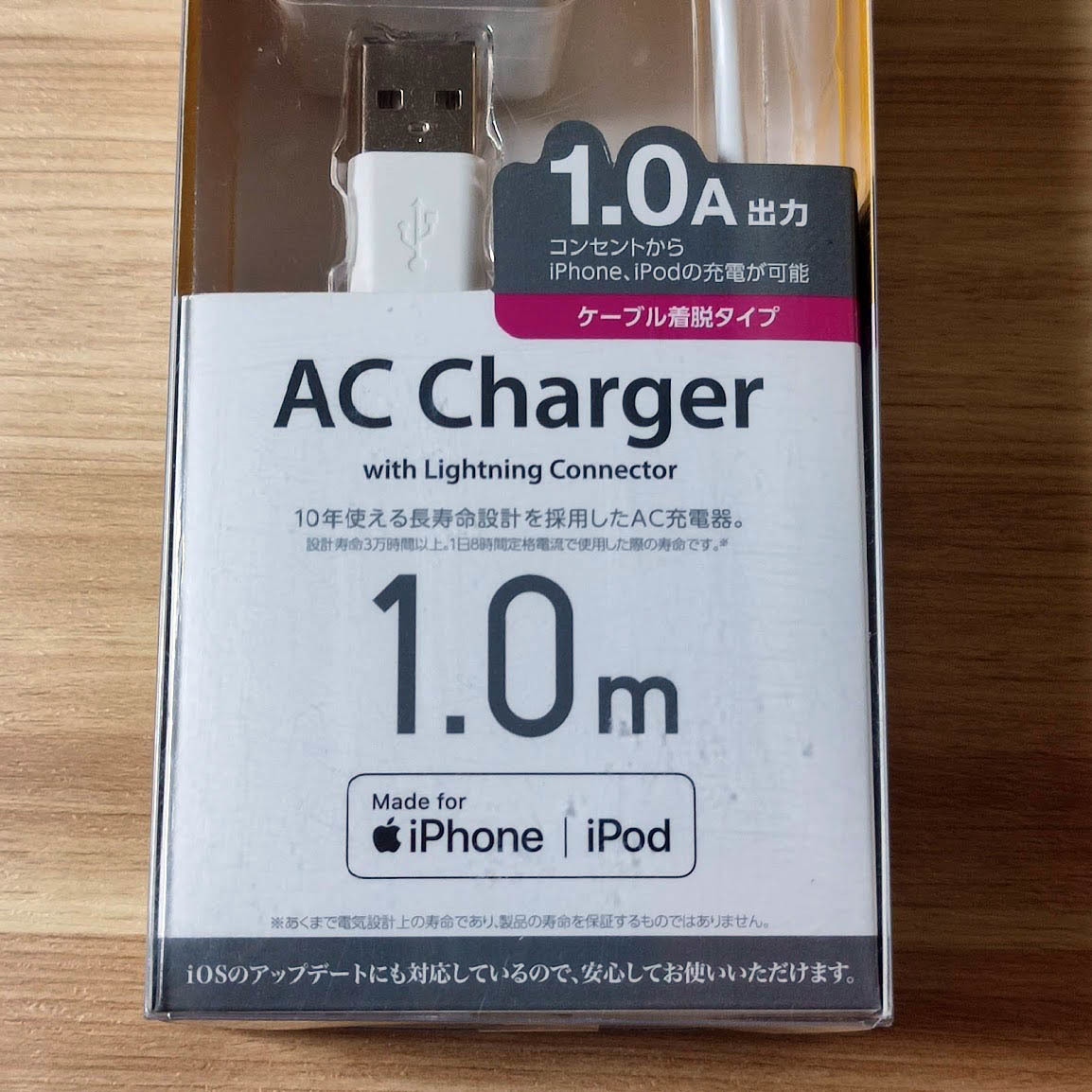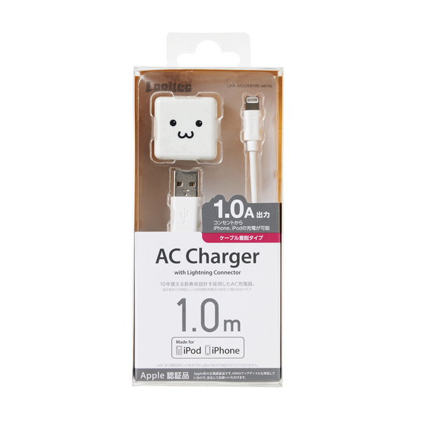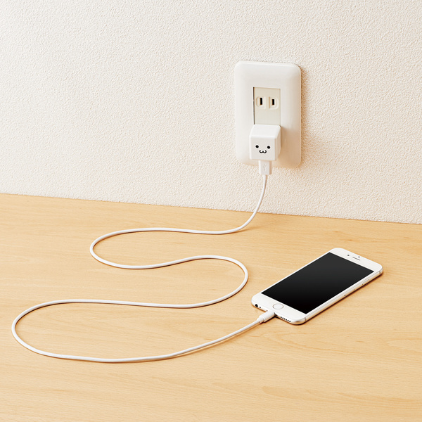 3万時間使用できる長寿命設計!コンパクトなキューブ型で、家庭用コンセントからLightningコネクタ搭載のiPhoneやiPadを気軽に充電できるLightningケーブル付きAC充電器。