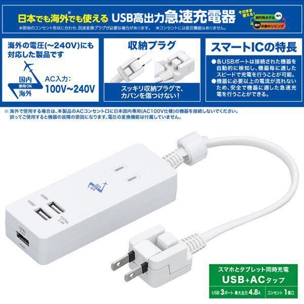 3USBポート付 電源コンセント 1AC+3USB 4.8A 急速充電タップ 4個口 iPhone スマホ USB充電 スマートIC搭載 国内海外兼用 延長コード 便利 ◇ 充電タップVFC48A