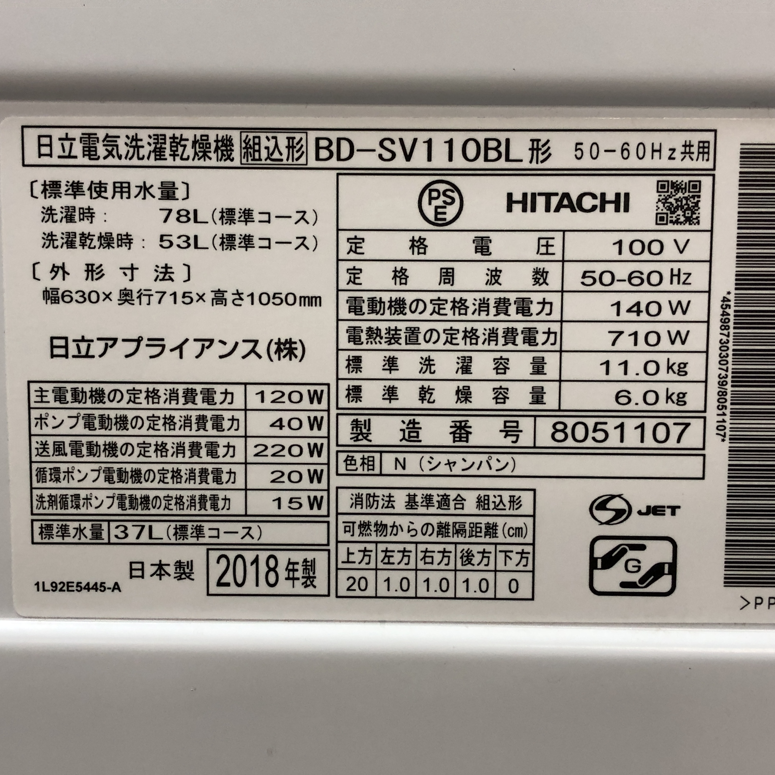 | ドア内のパッキンに取りきれない汚れが残っています。 右側面に軽微な凹みがあります。 | ||||||||||||||||||||