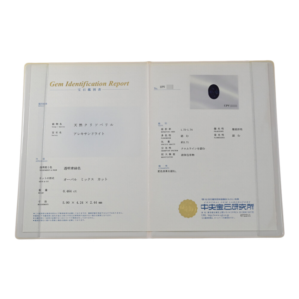 | GemCEREY ジェムケリー ジュエリールース・アレキサンドライトルース/Loose/ルース/AL0.464ct/透明青緑色/翌日配送可 お問合せ番号 ■592204 (LALA0082U) | |