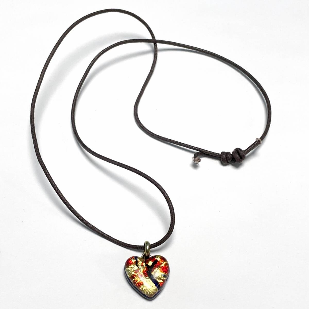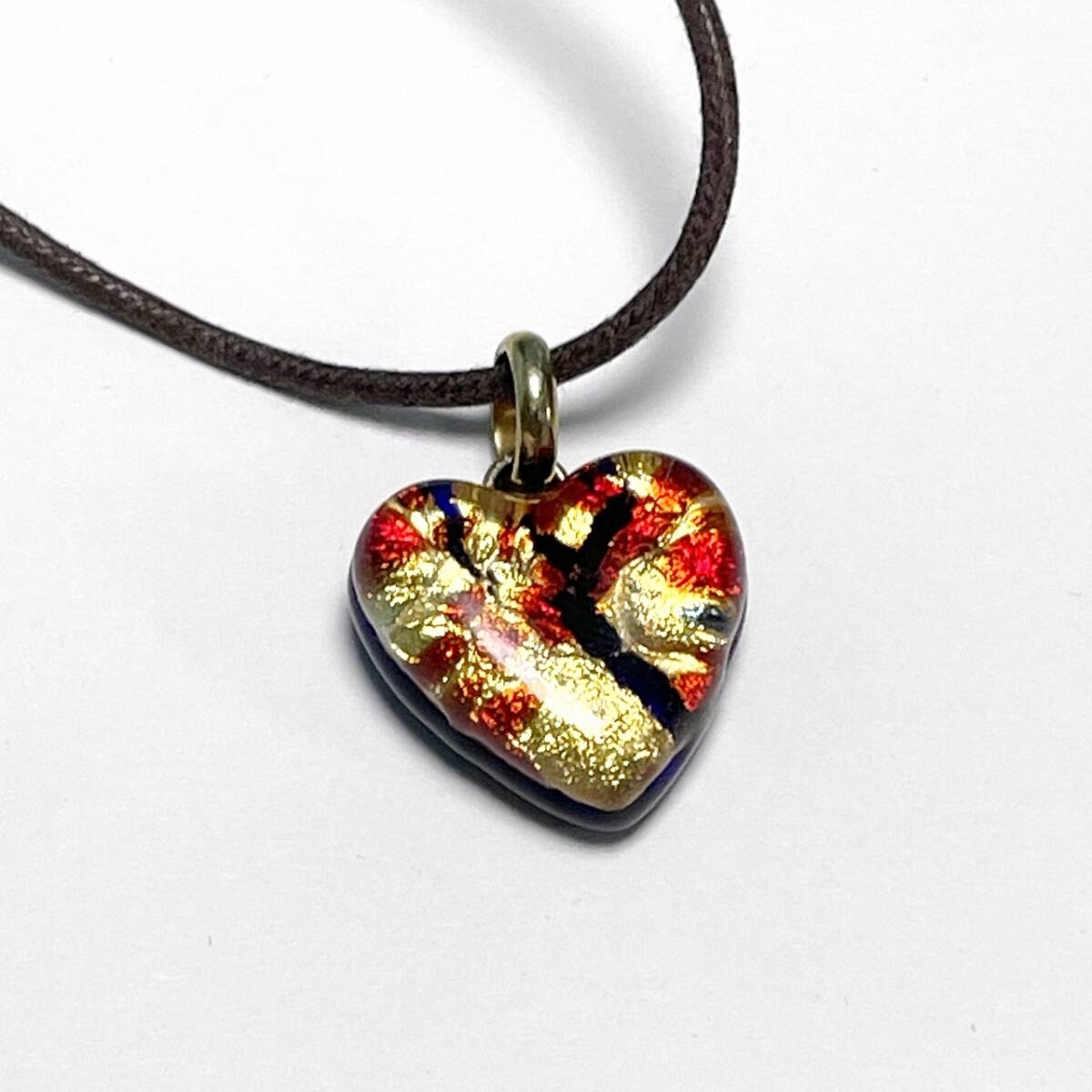 新品 伝統工芸品 ハンドメイド 和風 和柄 ハート柄 ガラス ネックレス 金色×赤色×黒色 ゴールド×レッド×ブラック