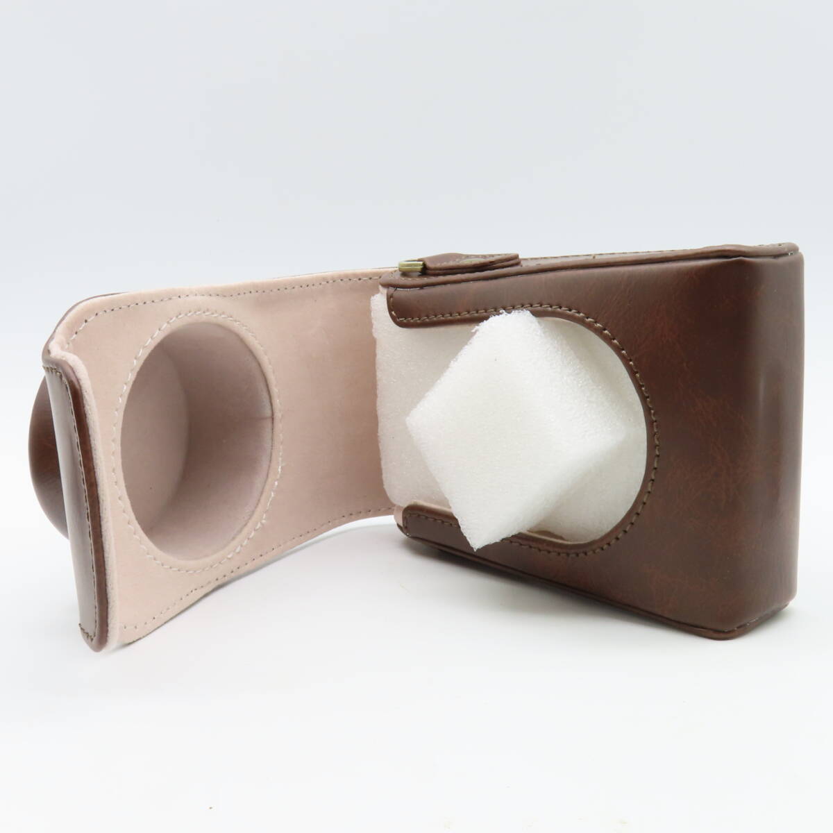 外装はPUレザー(軽いシワ加工)、内装は生地のみで構成され、背面・側面にはクッション加工が施されており、カメラを傷つける事がありません。