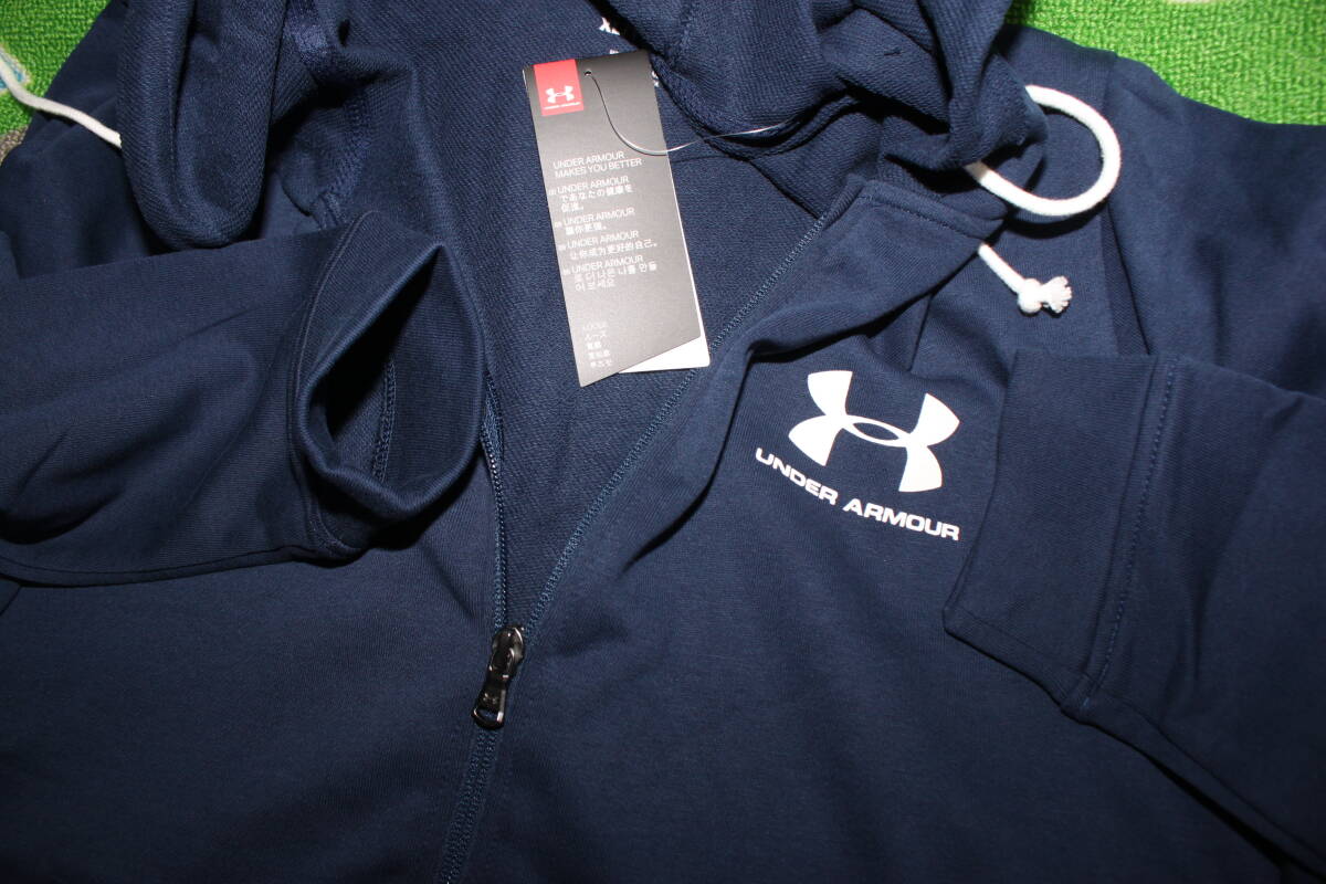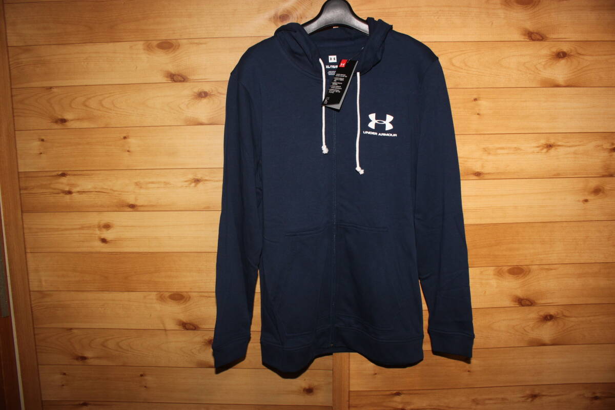 未使用 XL 紺 アンダーアーマー スポーツスタイル テリー フルジップ フーディー コットンパーカー 1345776  送料無料