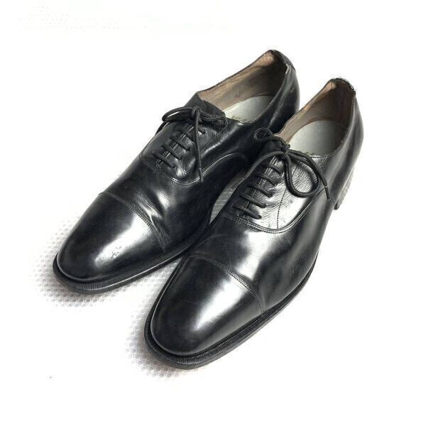 1980年代以前?★ビンテージ品★Wallis ウォリス★サイズ8 ★27.0cm★オールレザー キャップトゥ ストレートチップ★黒 ブラック◆is7-21