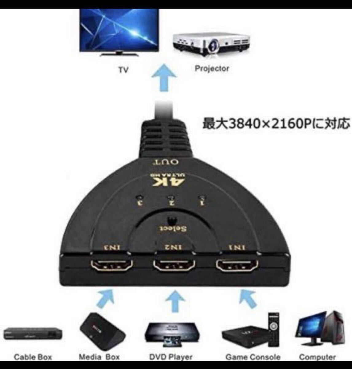 HDMI切替器 3入力1出力 4K 分配器 セレクター パソコン PS3 Xbox 3D 1080p 3D対応 電源不要 Chromecast Stick Xbox One ゲーム機 レコーダー テレビ