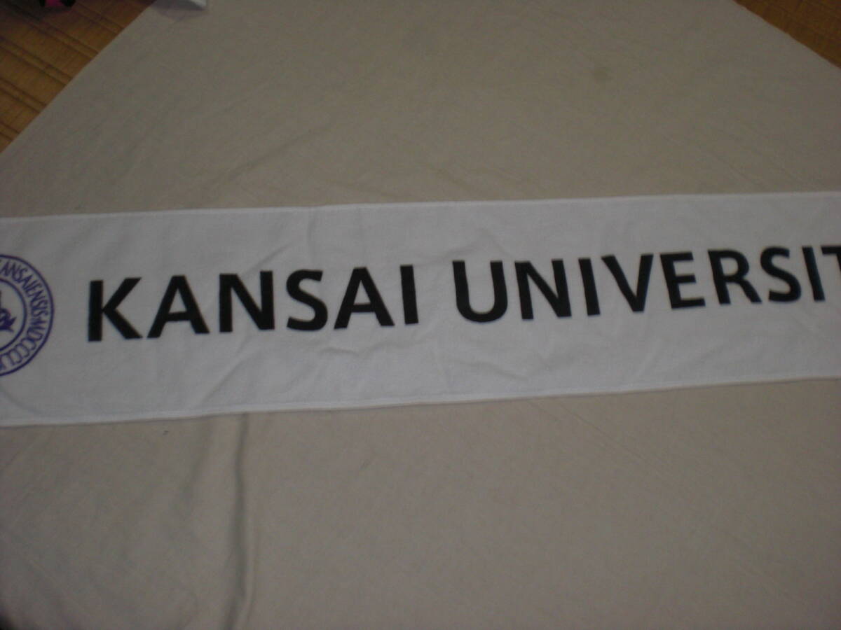 まもなく開催される関西学生対抗駅伝(丹後駅伝)2025に出場する関西大学のタオルマフラー。ミズノ製で中国製。綿100%。サイズ:111×21㎝。未使用品です。
