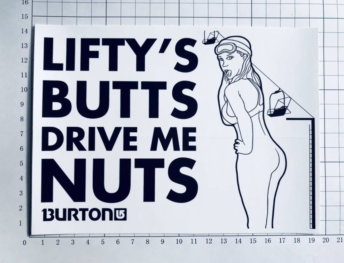 ・BURTON LIFTY’S BUTTS DRIVE ME NUTS ステッカー バートン スノーボード 日本未入荷 レアステッカー