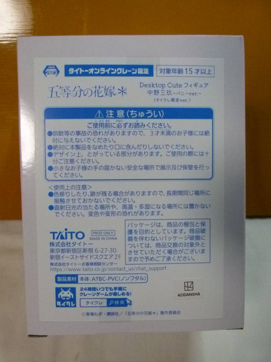 【送込】【フィギュア】 五等分の花嫁 DesktopCuteフィギュア 中野三玖~バニーver.~ タイクレ限定ver.【新品未開封】【送料無料】