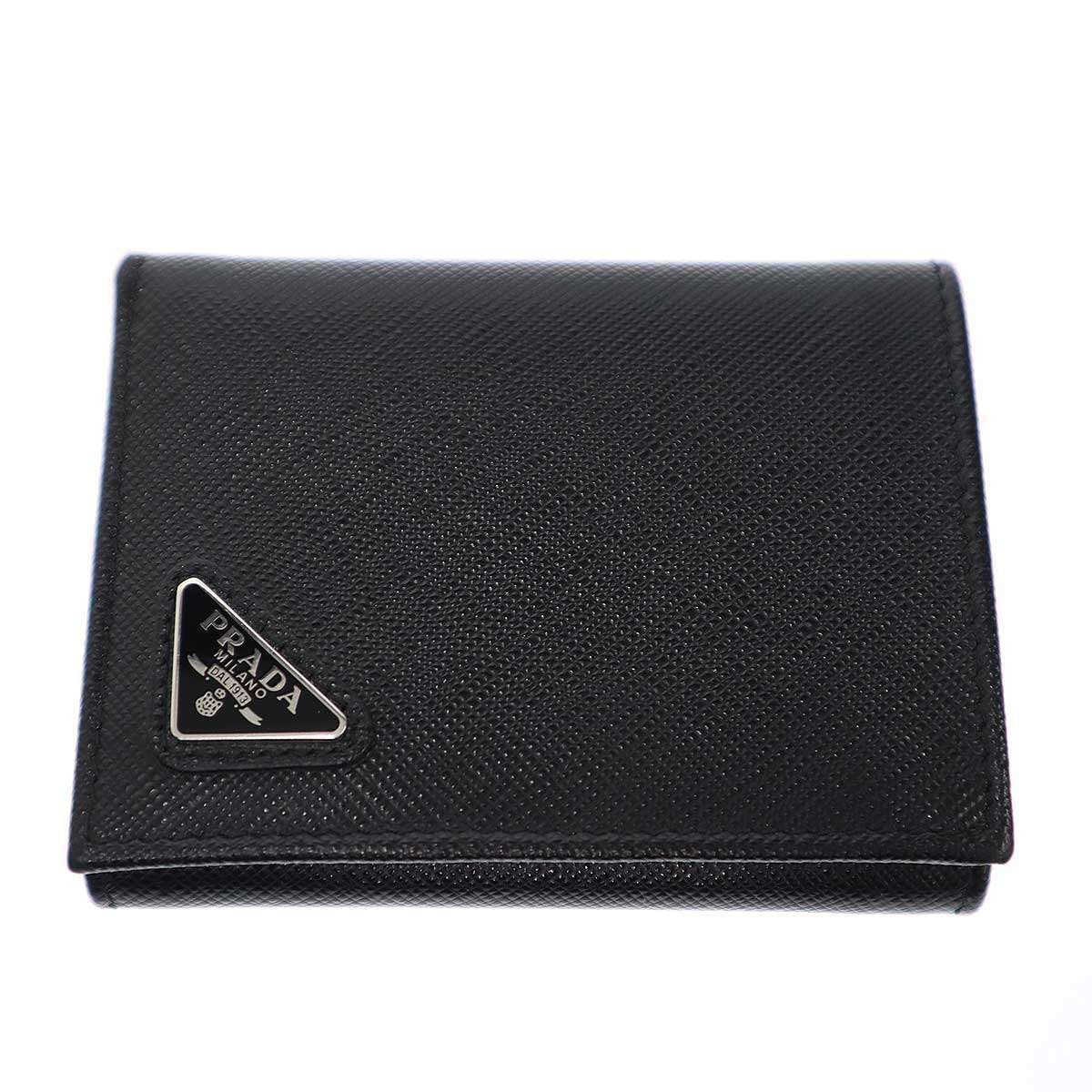 PRADA プラダ ロゴプレート サフィアーノレザー コンパクトウォレット 財布 2MH041 ブラック ITH54L66W1NG