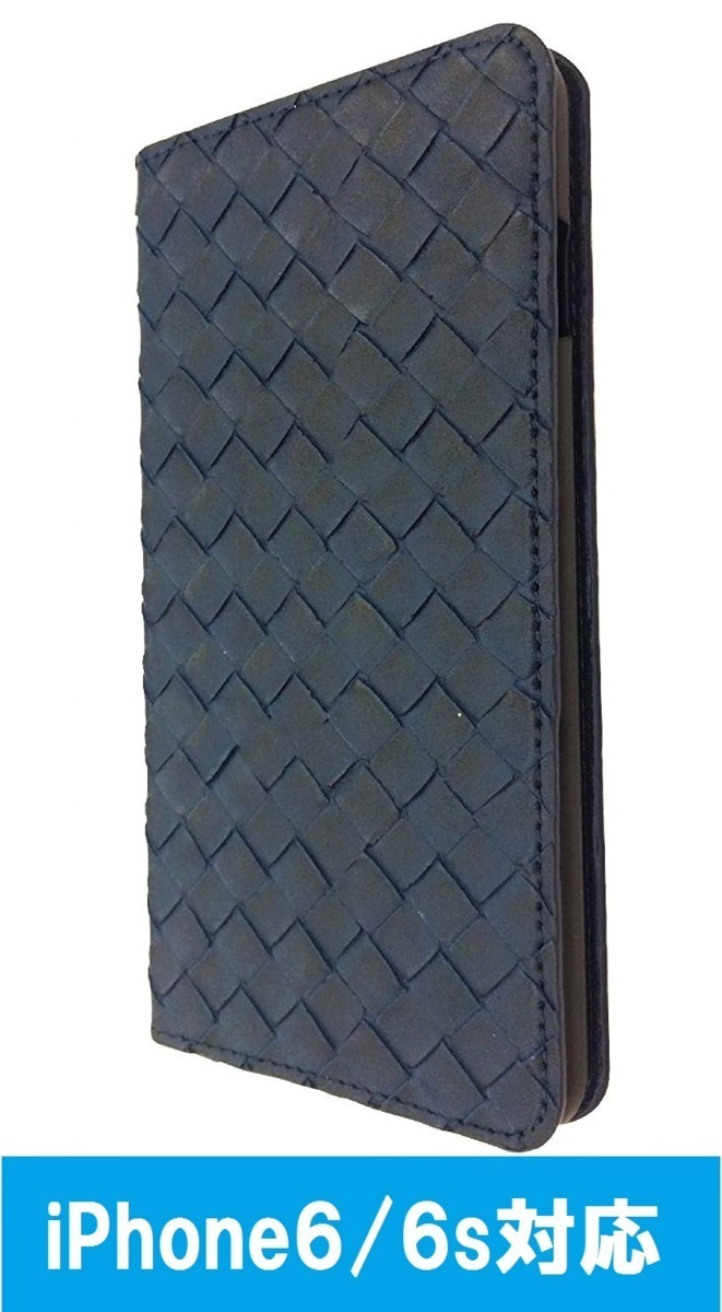 ☆1スタ iPhone6s イタリアン PUレザー ケース ネイビー イントレチャート調 フリップカバー レザー調 シンプル アイフォーン iPhone6