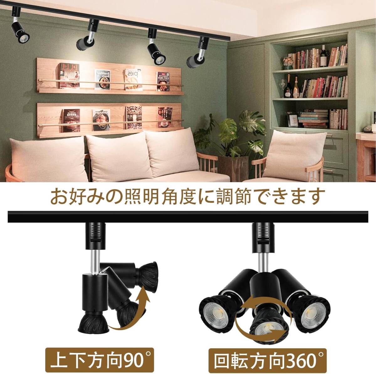 ライティングレール用スポットライトセット。E26口金、LED電球(5.5W/60W形相当)付き。
