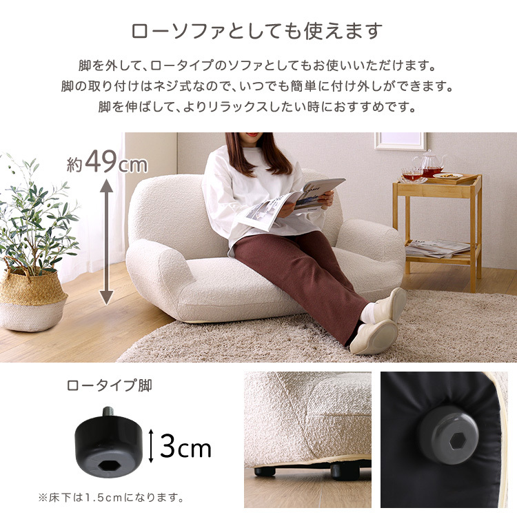 ふわふわ・モコモコした肌触りのブークレ生地を使用したソファです。