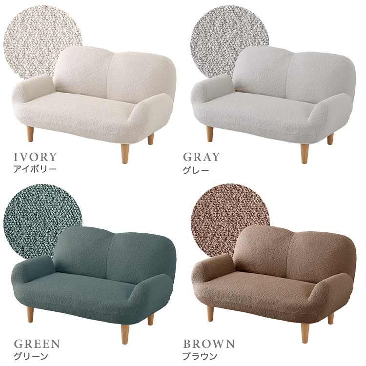 大人かわいいインテリア ブークレソファ 2人掛け【Chammy -チャミー-】 SH-07-OKBFS-GYNA