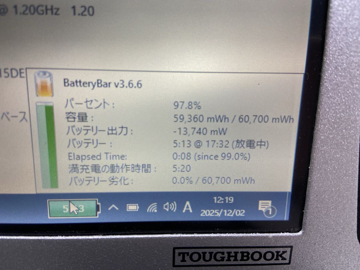 C2H2-2-5120224 純正新品バッテリー Panasonic TOUGHBOOK タフブック CF-19用 CF-VZSU48CJS バッテリーチャージ(中古) CF-VCBTB2
