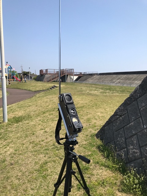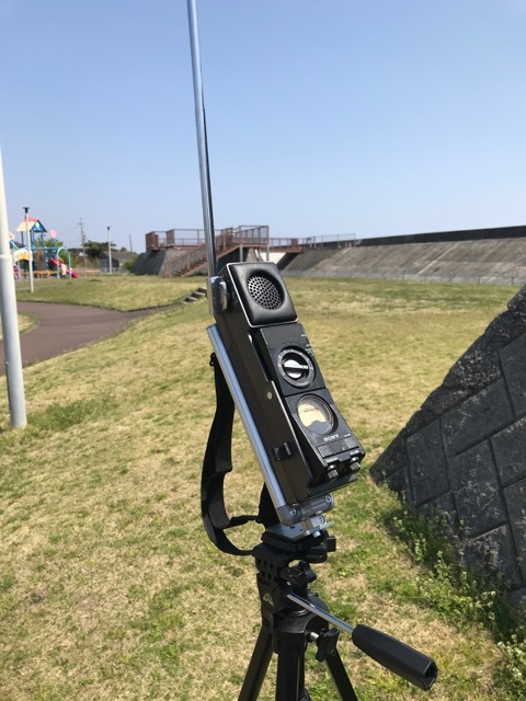 カメラ、ビデオ三脚に取り付けて使用する、市民ラジオのSONY ハンディー機 ICB-680用のスタンド型ホルダーです。