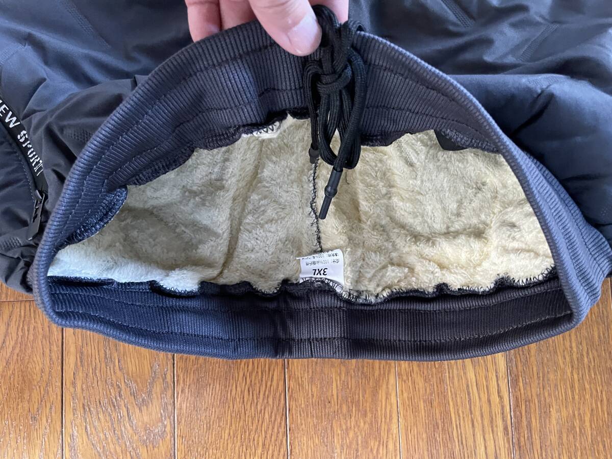ダウンパンツ同様、表生地とは溶着処理となっており空気層が厚く軽く保温性の高い作りです。