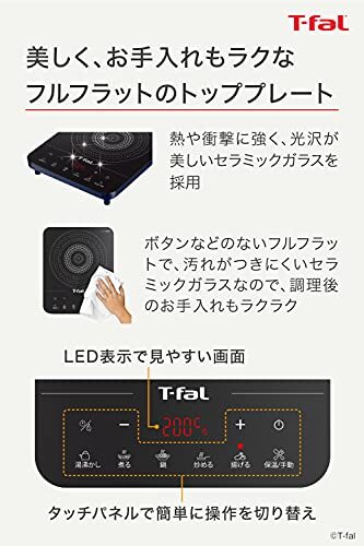 ティファール 卓上IH調理器 卓上IHコンロ 1400W タッチパネル 6つの調理プログラム 「フルフラットIH ドレスブルー」R