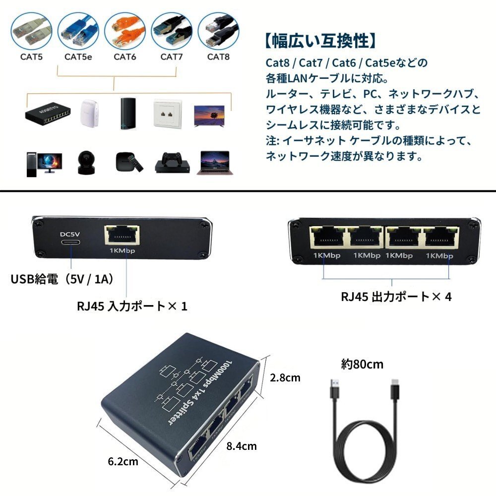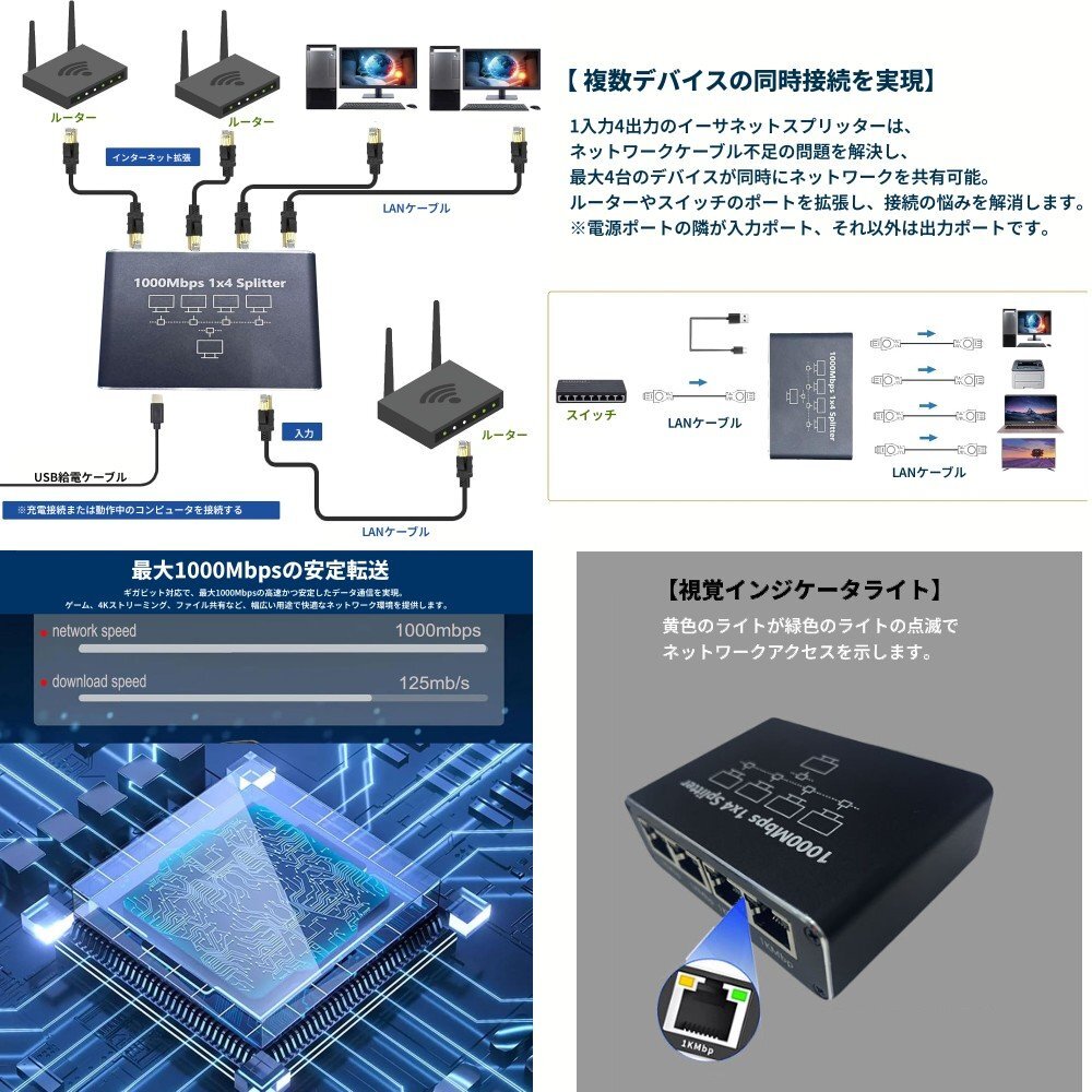 | 【LAN分配器 1入力4出力】 ギガビット対応イーサネットスプリッター |