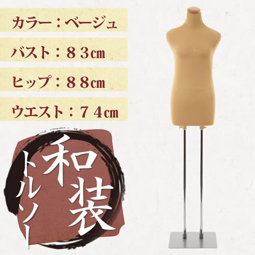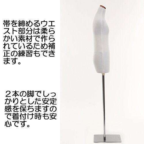 | ※カラーは肌色となります。 ウエスト(おなか回り)に弾力を持たせ、 実際に着付けを行っている感覚に近づけました。 また、2本の脚(ポール)が着付け時の 安定感を保ちます。 バスト:83cm ウエスト74cm: ヒップ : 88cm 全備重量約6.4kg 土台サイズ:33×37cm 高さ調整可能110~165cm |