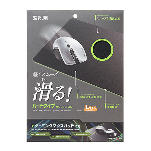 ※配送の送り主はサンワサプライ(株)と記載されています。沖縄・離島配送不可となります。 当店は正規販売代理店です。 特長 滑りの良さを追求した表面加工です。ゲーミング用としても満足いただける性能です。 しっかりした硬さで反りや湾曲を防ぎます。 裏面は激しい動きでもずれにくい滑り止めパターンのラバーを採用しています。 汚れたらサッと拭くだけで元の操作感がよみがえります。 気をつけておりますが、タイミングによっては在庫切れの場合があります。 仕様