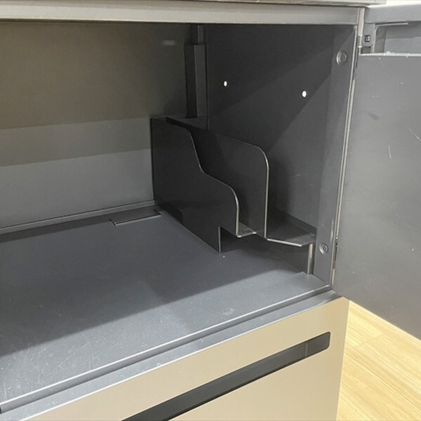 ■取り扱い番号 CU-878563B ■仕様 メーカー : オカムラ 製品名 : Rectline 色素材 : ブラック 外寸 : 幅900mm 奥行き450mm 高さ2150mm ランク : Bランク ■特徴 ※非常解錠キーは付属してません。 ※非常解錠キー作成は1本3000円(税別)、約1~2週間程かかります。別途見積になりますのでご了承ください。 上段:レクトライン 4B513Y ZK25 下段:ピクスライン 4Z32CR ZK25 庫内配線口付 棚板2枚 上段は可視性に優れており、頻繁に取り出す必要のある資料やカタログ類を収納するのに便利。下段は各個人に割り当てられたスペースで、大切な物品を安全に保管することができます。鍵はダイヤル錠なので、鍵を持ち歩く煩わしさや鍵の紛失の悩みを解消します。 |