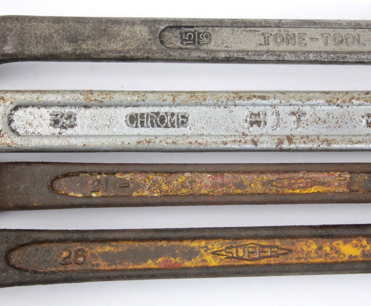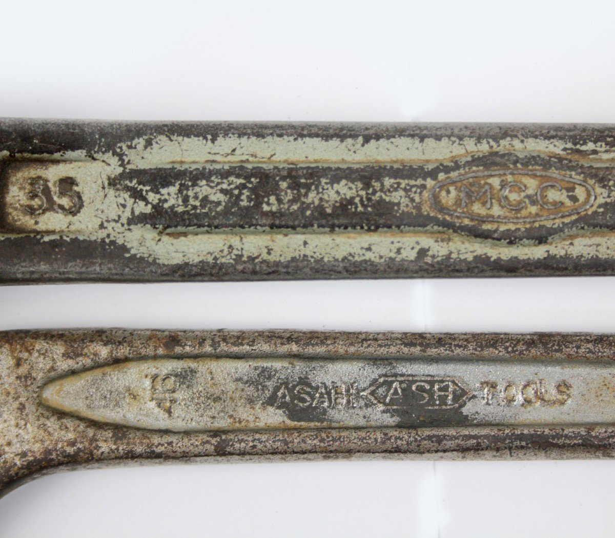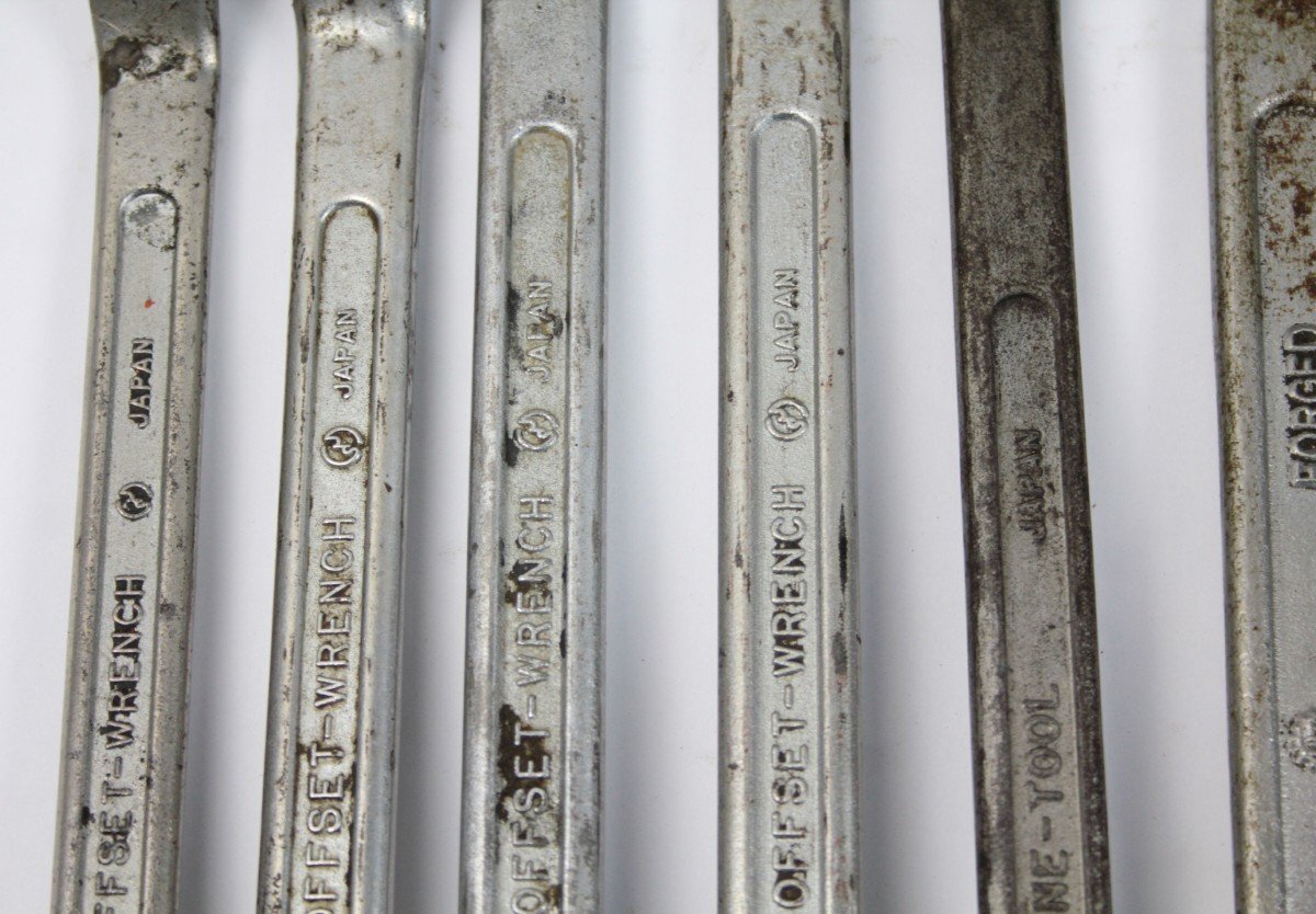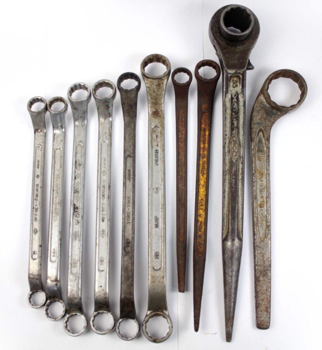 レンチの10点セットが入荷致しました。 経年による傷汚れ、錆びが多く見られます。 ラチェットレンチの正転逆転に問題はありませんでした。 詳しい商品状態は写真にてご確認ください。 この機会に是非ご検討宜しくお願い致します。 【詳細】