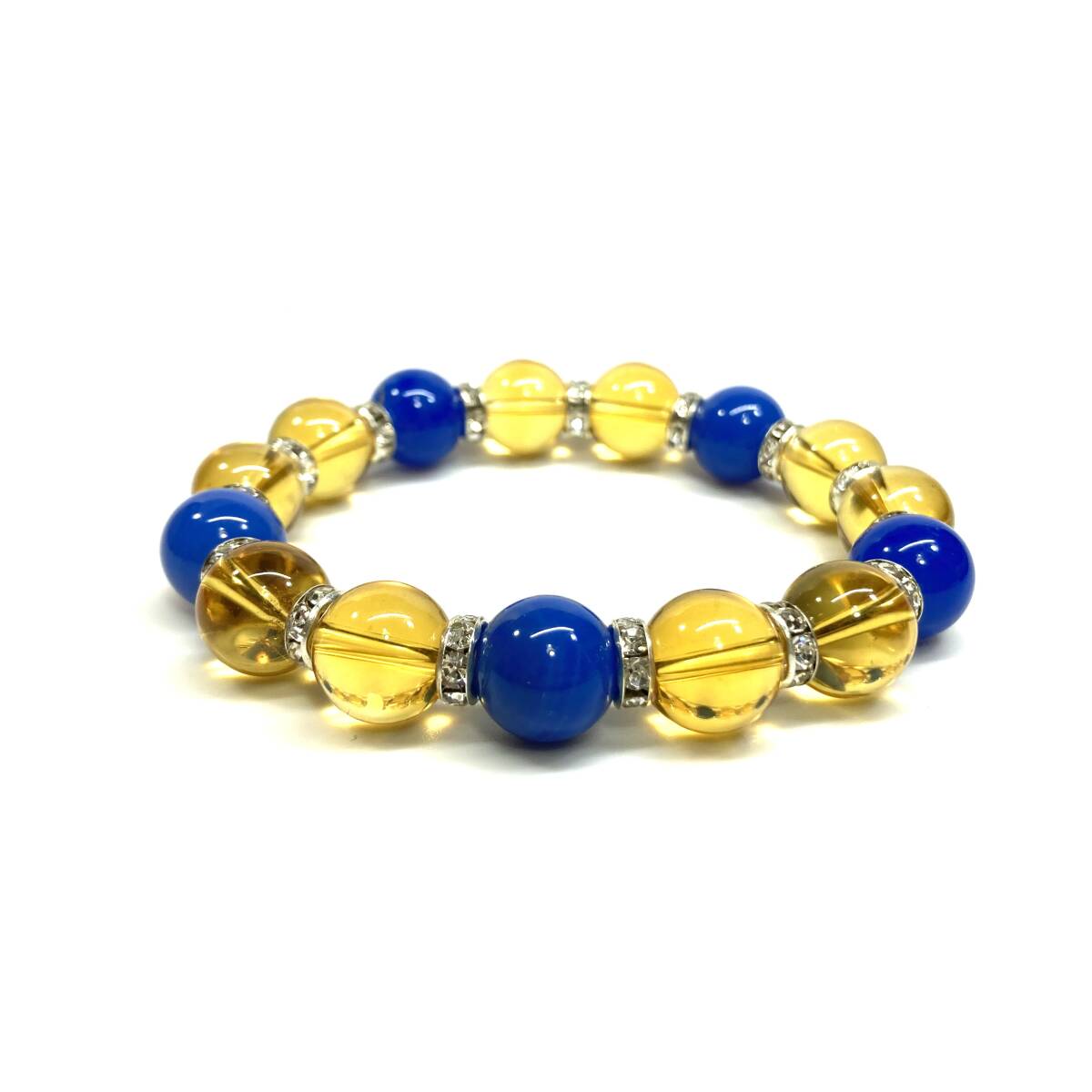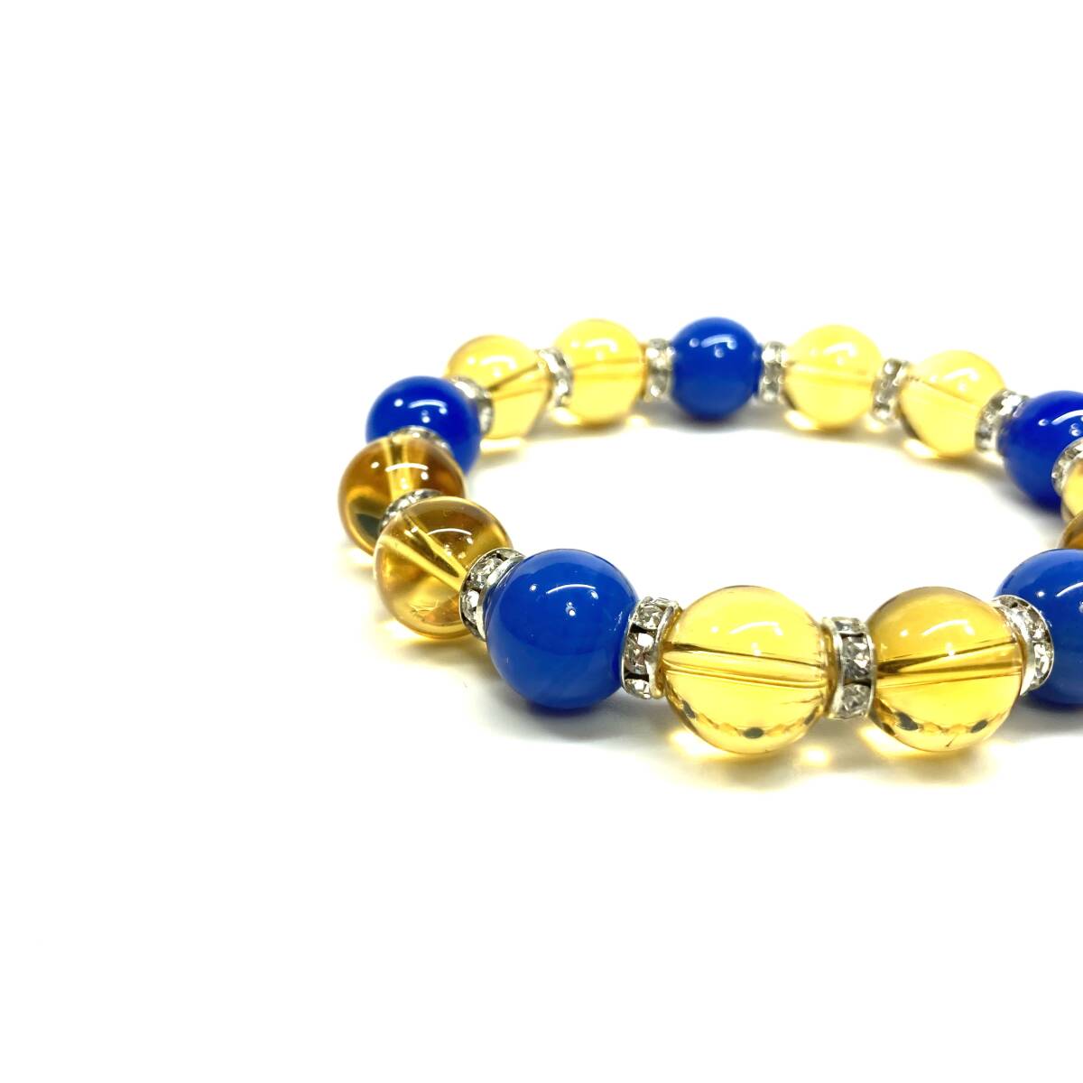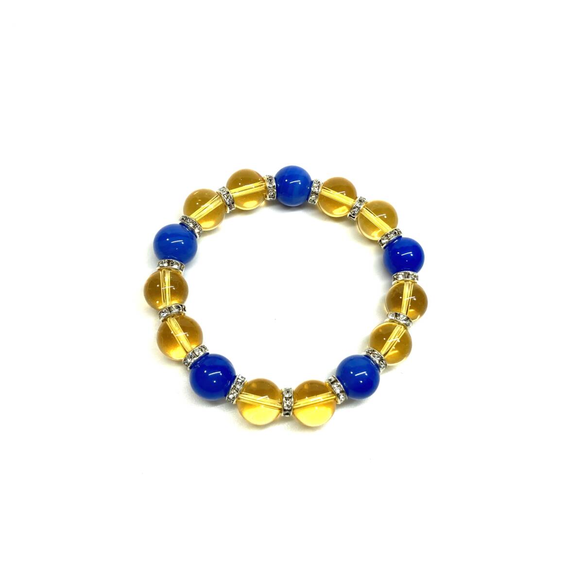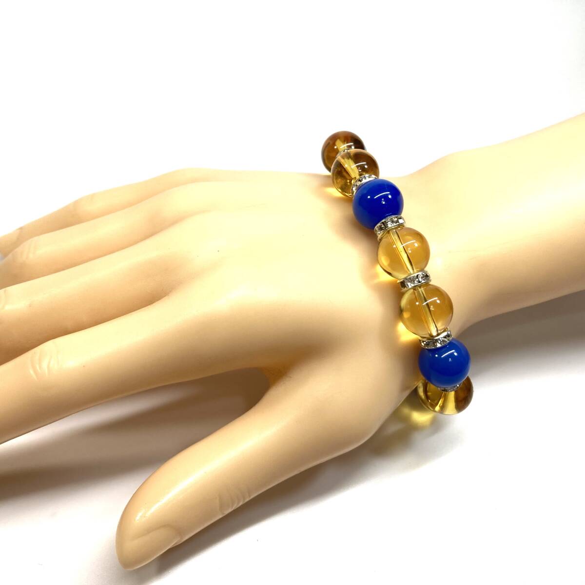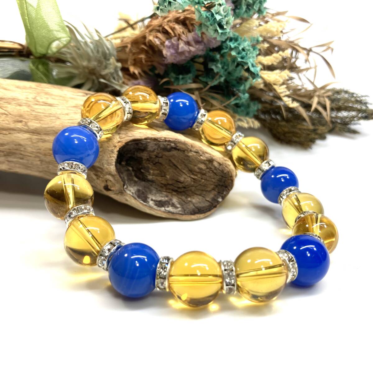 こちらは、青瑪瑙とシトリンを組み合わせたパワーストーンブレスレットです。間にはロンデルを挟み高級感あるデザインに仕上げております。石大きさは12mm玉を使用して内周約18cmです。気になる方は是非この機会にどうぞ。