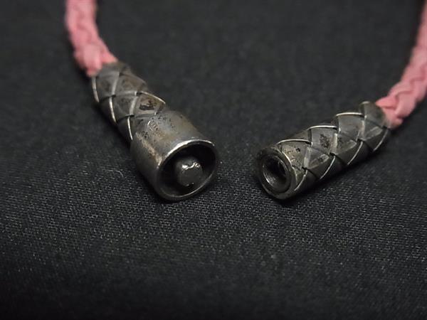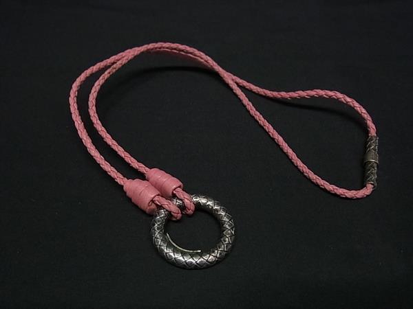 1円 ■美品■ BOTTEGA VENETA ボッテガヴェネタ レザー×SV925 ネックレス ペンダント アクセサリー メンズ レディース ピンク系 FP9495