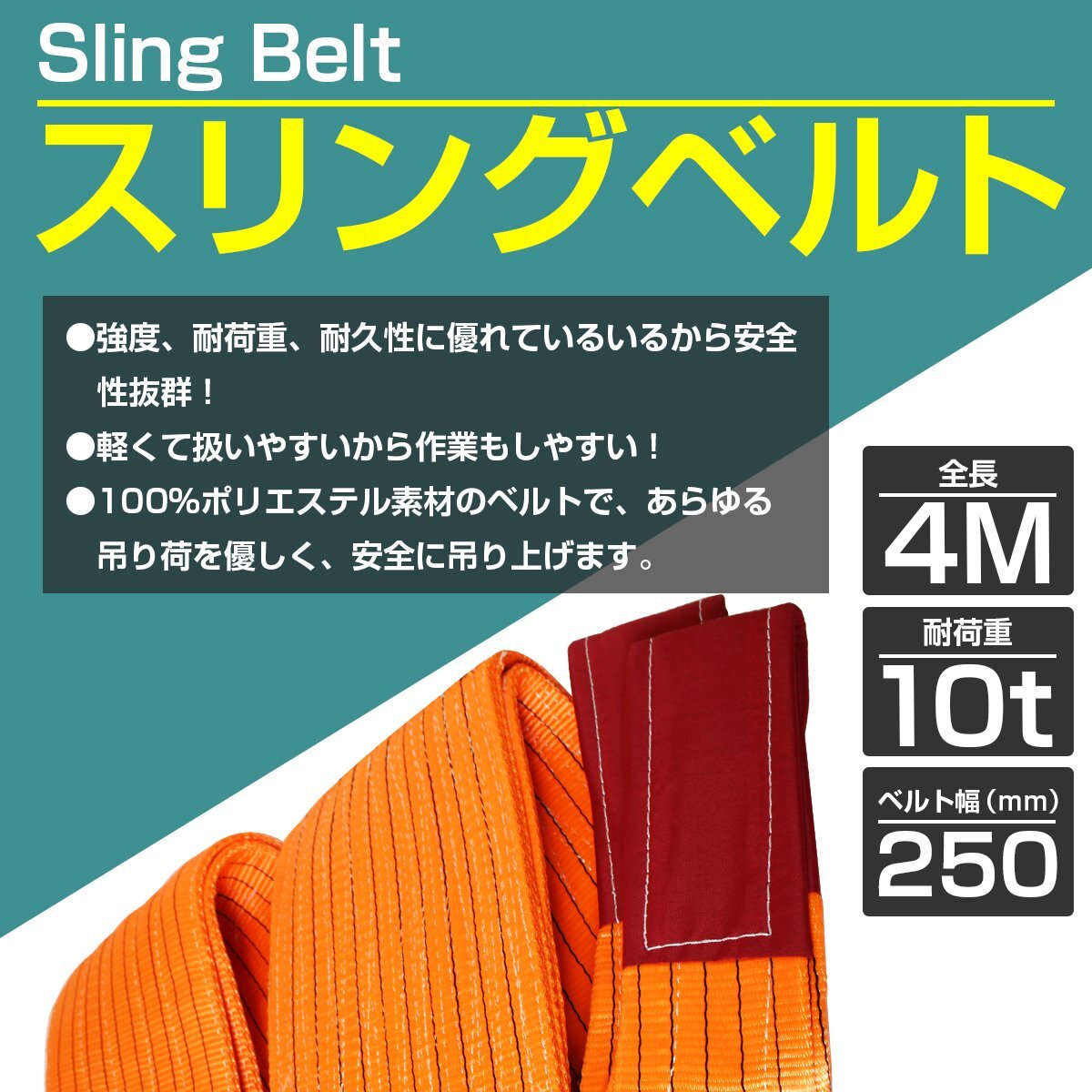 [1本/耐荷10t/長さ 4m] スリング ベルト 吊上げ ナイロン クレーン ロープ 荷吊り 玉掛け 牽引 運搬 10トン 幅250mm