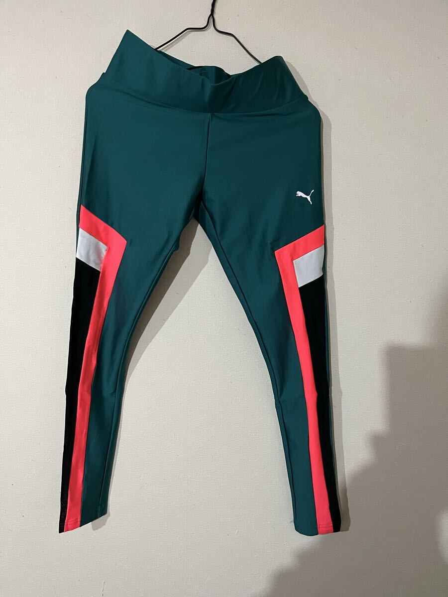 ストレッチ素材で、カラーブロックが特徴のPUMAのレギンス。