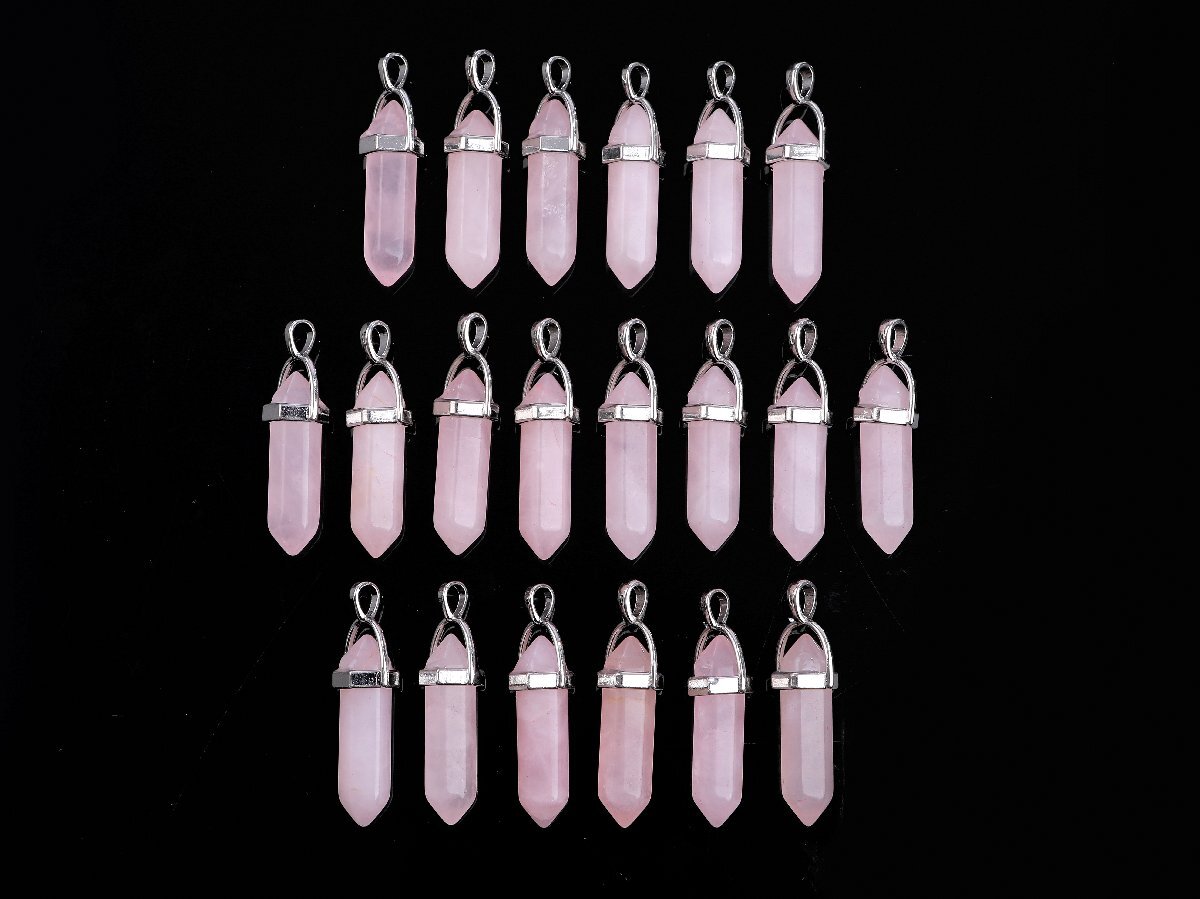 まとめて大量 天然石六角柱 ローズクォーツ ペンダントトップ 20個セット まとめて大量 天然石六角柱 ローズクォーツ ペンダントトップ 20個セットです。 自然界で最も安定した形といわれている六角柱。 あなたのパワーを高め、ヒーリング効果もあります。 願いをかけるならば、あなたに幸運を呼び込み、潜在能力を引き出してくれることでしょう。 長い年月をかけて錬り込まれた大地の力を感じてください。 ストーン: ローズクォーツ サイズ: 約4cm (金具を含めた全長) 重量: 約4.5g 効用: 女性性を高めて、内面の美を輝かせてくれます。恋愛成就に絶大なパワーを発揮するといわれております。 また失恋の傷も癒してくれます。 身につけることで、穏やかな癒しのパワーが心の奥深くまで浸透し、失恋からふたたび新たな愛へと向かわせてくれるでしょう。 ※天然素材のため、製造過程にできた多少の欠けスレなどがある場合がございます。 ※まれに一部の金具が石より外れてしまっている場合があります。その点をご理解いただいた上でのご入札とさせていただきます。 (接着材等で補修可能です。) 当店の他の出品商品との同梱料は下記のとおり落札1点につき200円です。 |