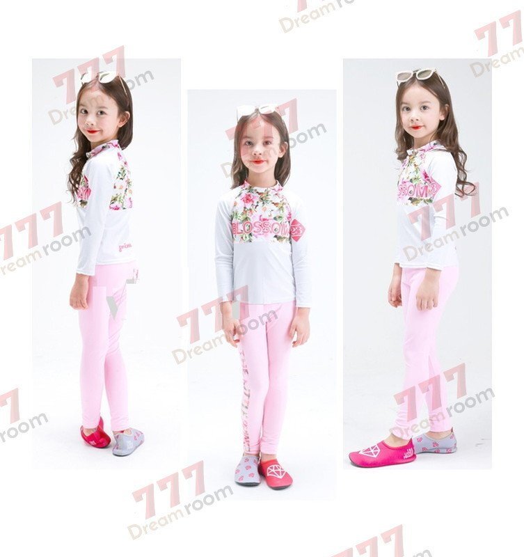 ラッシュガード 水着 上下セットアップ ホワイト【M】80-95cm 子供服 女の子 レギンス 長袖 ズボン 日よけ ビキニ 海 プール swi-114