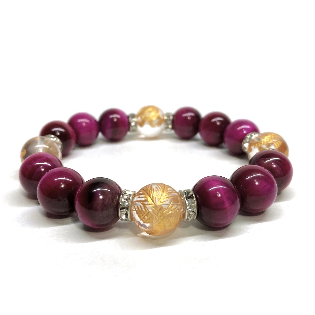こちらは、四神獣金彫水晶とピンクタイガーアイを組み合わせたパワーストーンブレスレットです。四神獣は、中国の伝説で4つの方向(東西南北)を守護する神聖な神。四神獣、厄災から身を守り、多くの運気を呼び込むと言われております。石大きさは程よくインパクトのある12mm玉で内周 約17cmです。 数に限りがございますので気になる方はお早めにどうぞ。