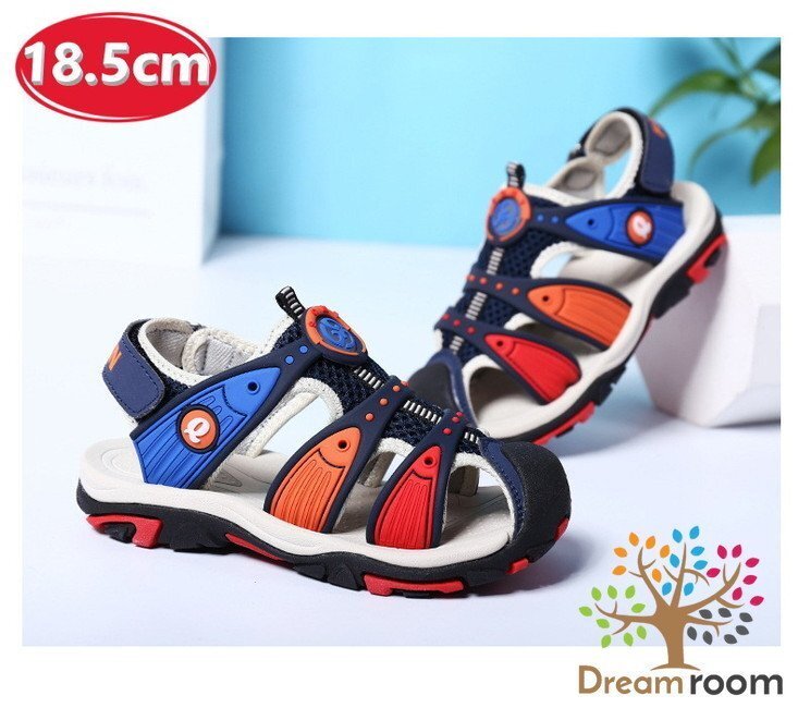 1スタ☆Rainbow クッションサンダル 【ブルー×レッド 18.5cm】 マリン 海 川 キッズ シューズ ビーチサンダル 子供用 男女