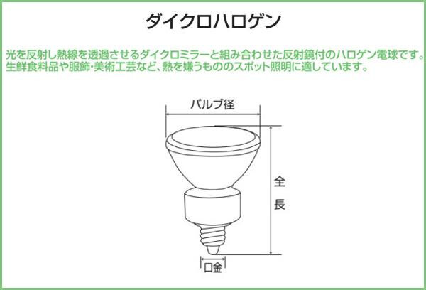 | 光の利用効率を最大限に高めた新型ミラーを採用したハロゲン電球です。省電力・UVカットタイプ。 |