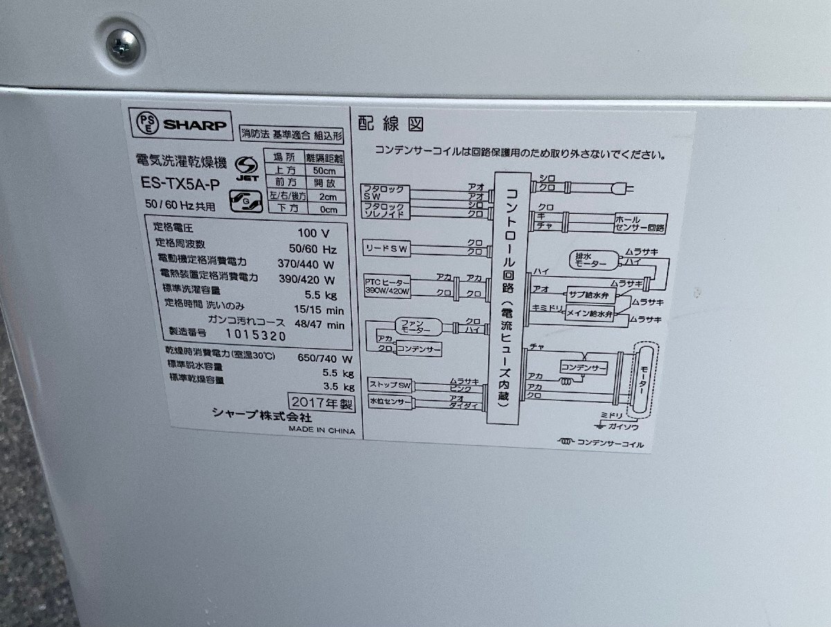 【RKGSE-339】特価!シャープ/5kg/タテ型全自動洗濯乾燥機/ES-TX5A-P/分解洗浄/中古品/2017年製/店頭引取推奨商品/弊社近隣配達も可/即決あ