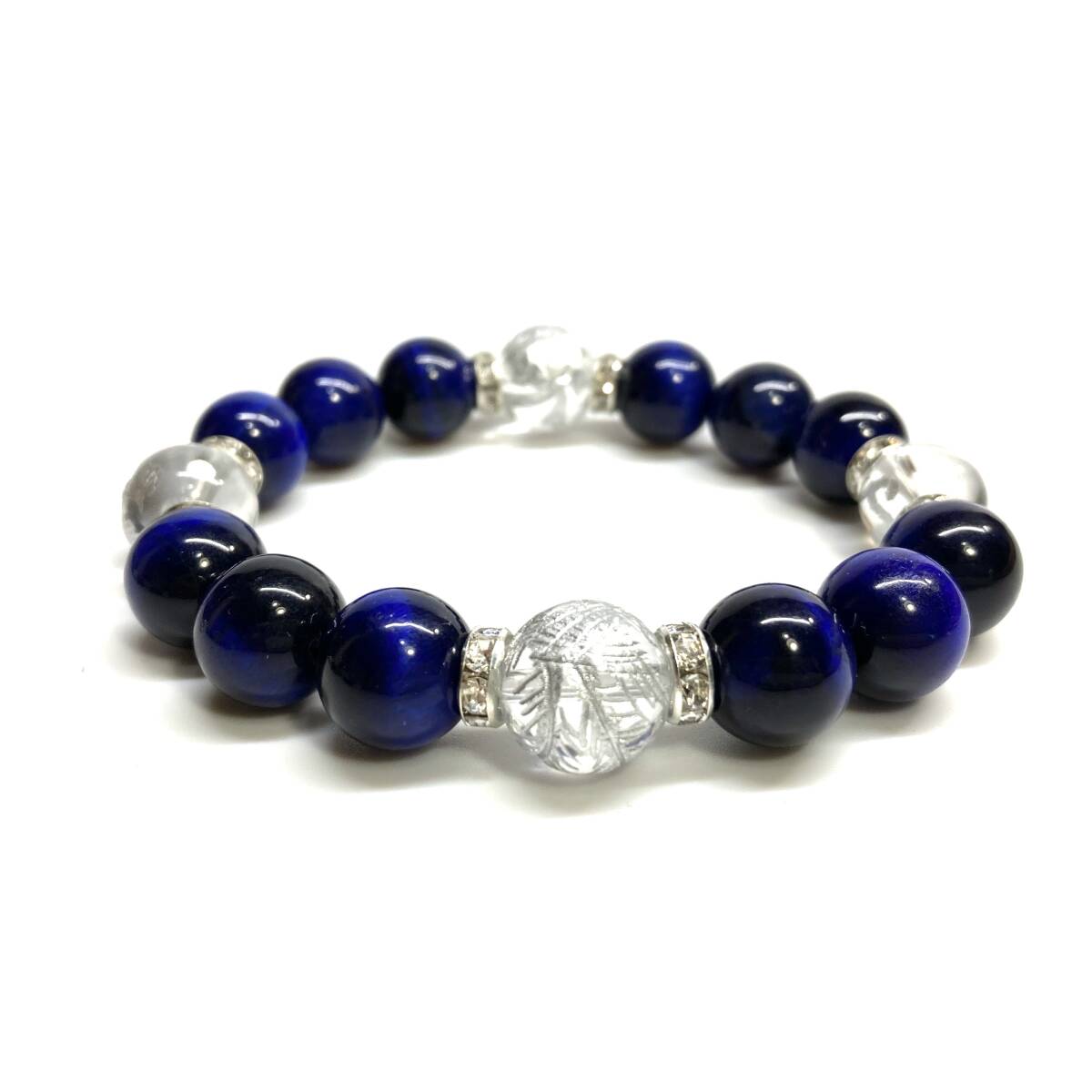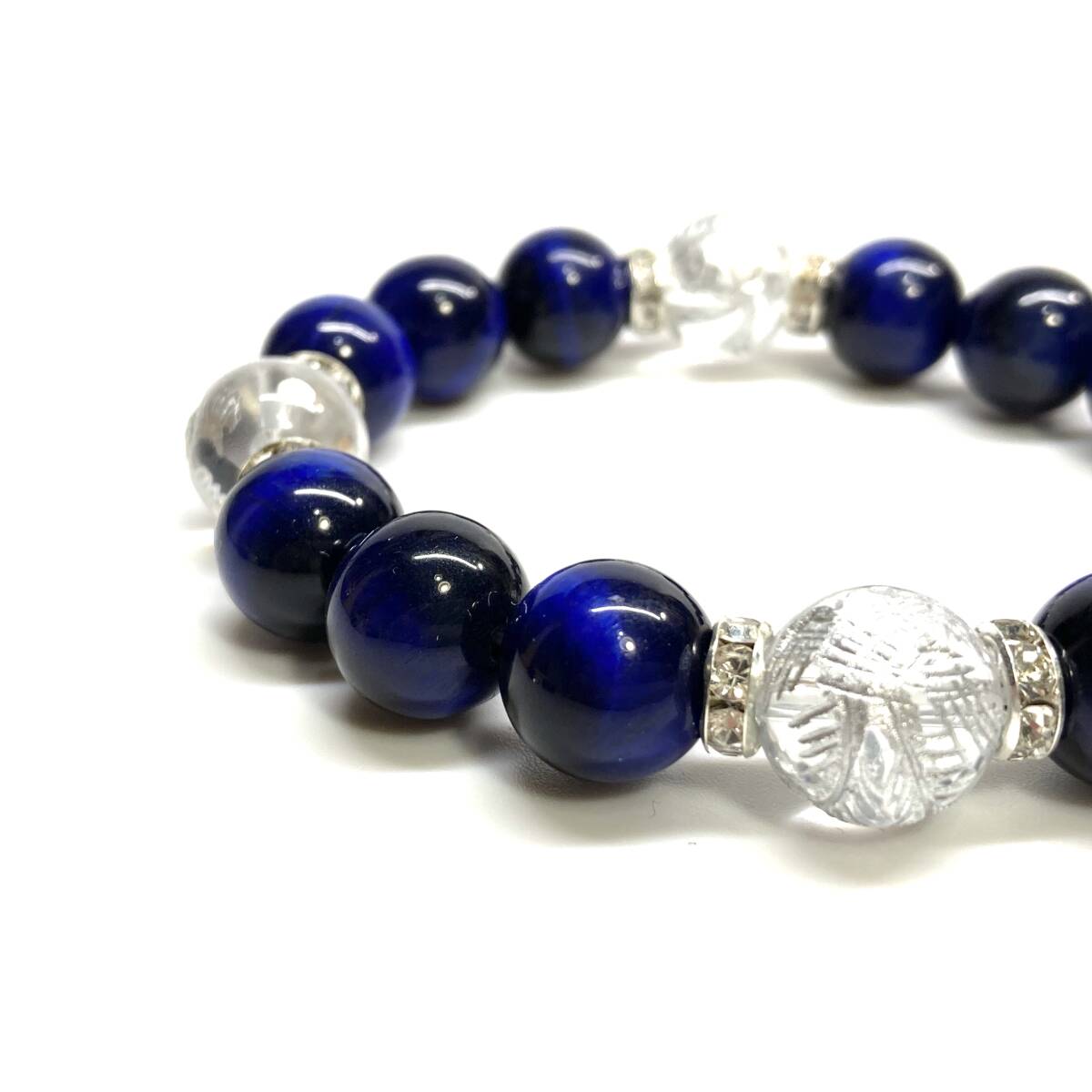 四神獣銀彫水晶×ブルータイガーアイ 12mm パワーストーン ブレスレット天然石 青龍 白虎 玄武 朱雀 運気上昇 お守り 四神獸 四神相応 S