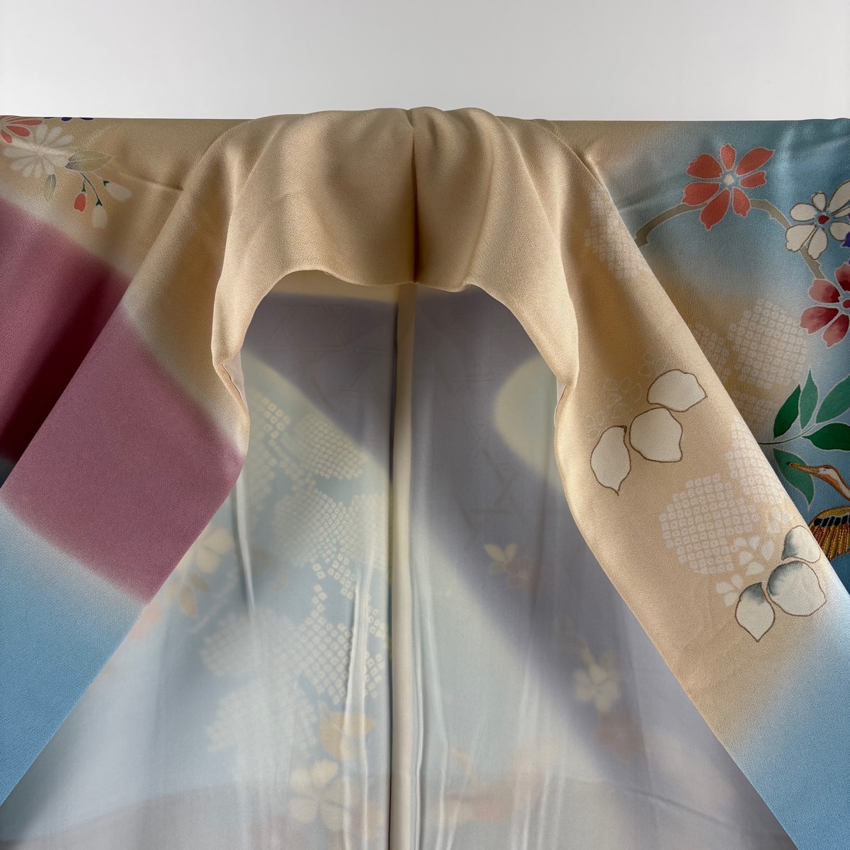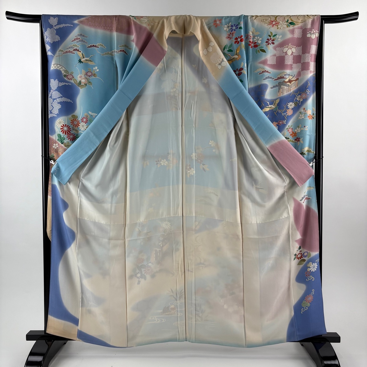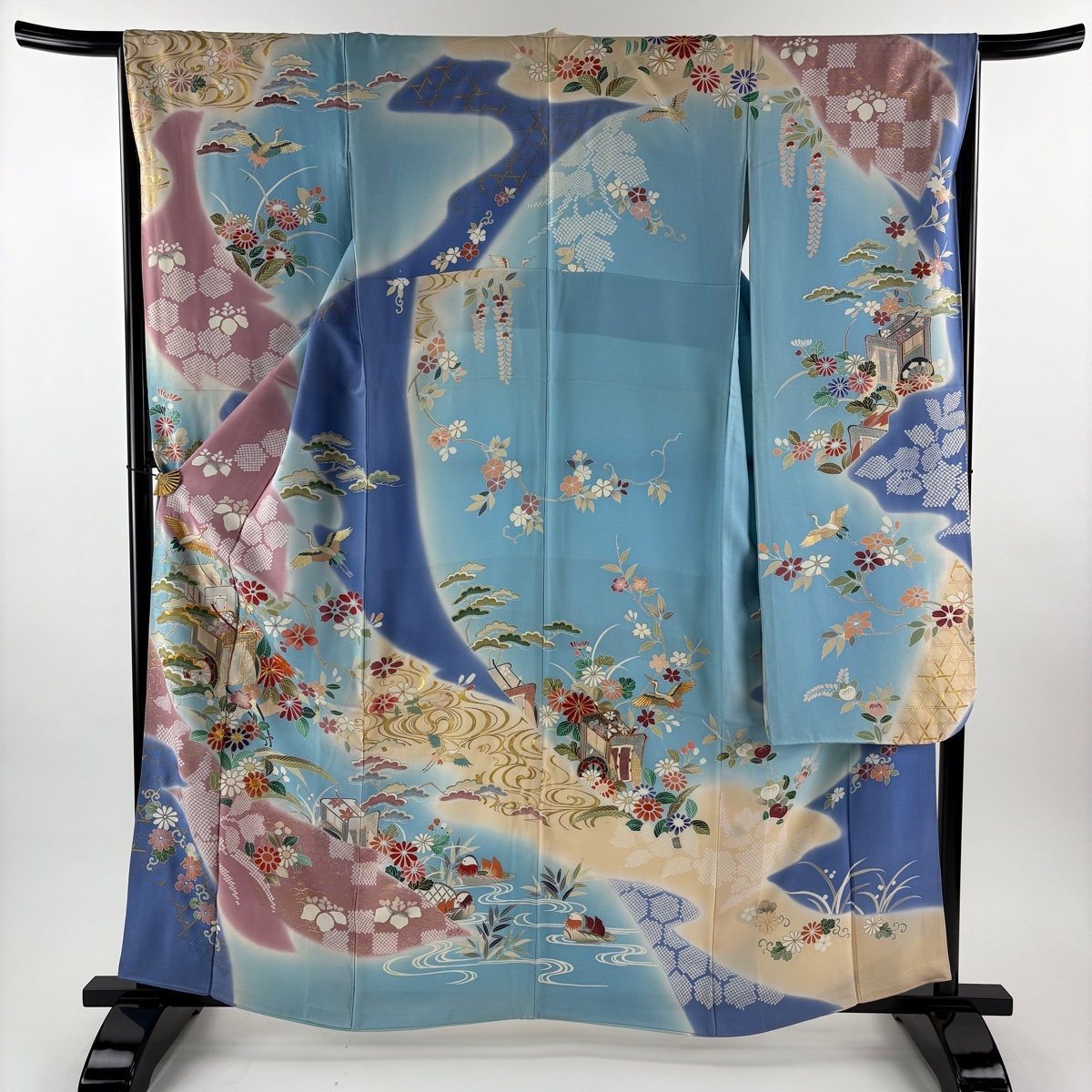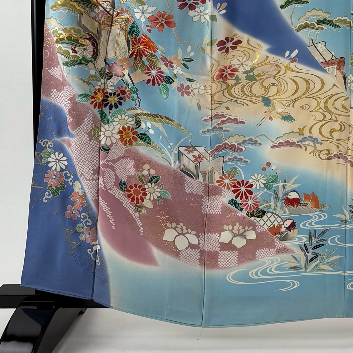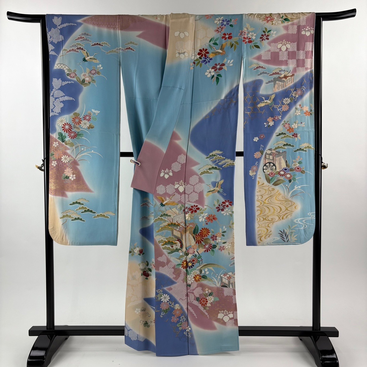 | 振袖 逸品 千總 落款 御所車 草花 金糸 金彩 水色 袷 身丈161 裄丈65 M 正絹 【中古】 |