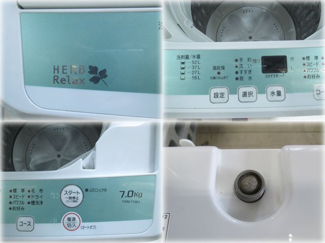 HERB Relax(ヤマダ電機) 全自動洗濯機 YWM-T70D1 を出品いたします。 ■特徴■ ステンレス槽だから 黒カビの発生を抑えて清潔 洗浄液濃度2段階洗いで 繊維の芯から汚れを落とす 忙しい朝にも便利! 標準コースでも約34分で洗濯できる ■仕様■